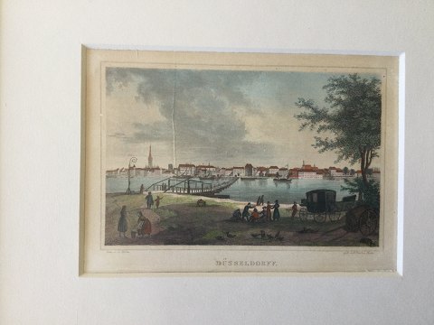 Koloreret stålstik af Hermann Emden - Vue ind over Düsseldorf 1844.
