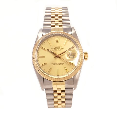 Rolex Oyster Perpetual Datejust g/s ref. 16013. Dansk sæt leveres med boks og ...
