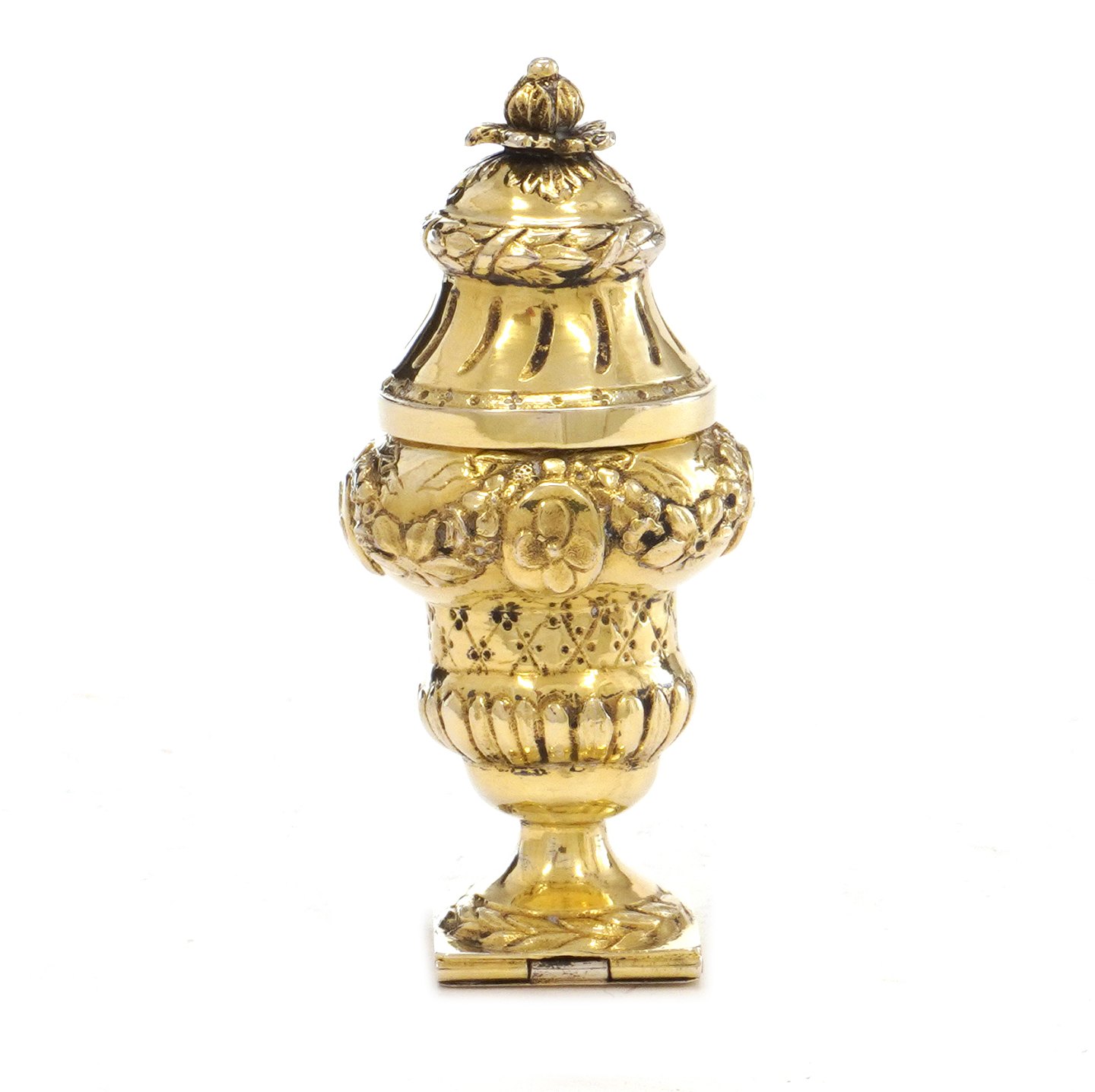 Hovedvandsæg i delvist forgyldt sølv af Christian Nielsen Lindbach, 1767-1815, København. H: 7,6cm