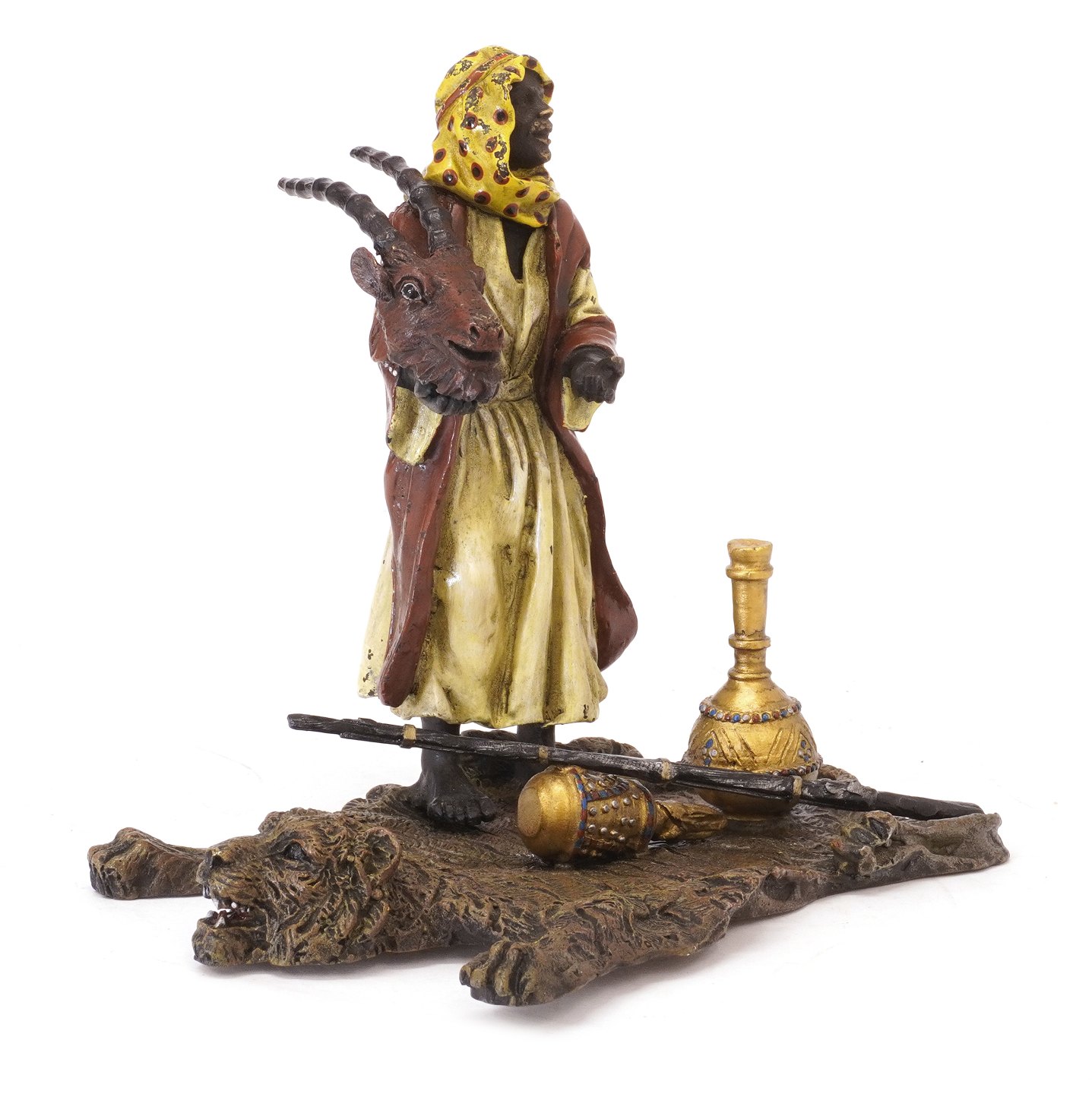 Franz Bergmann wienerbronze i form af trofæsælger. Stemplet. H: 14cm. Base: 17x11cm