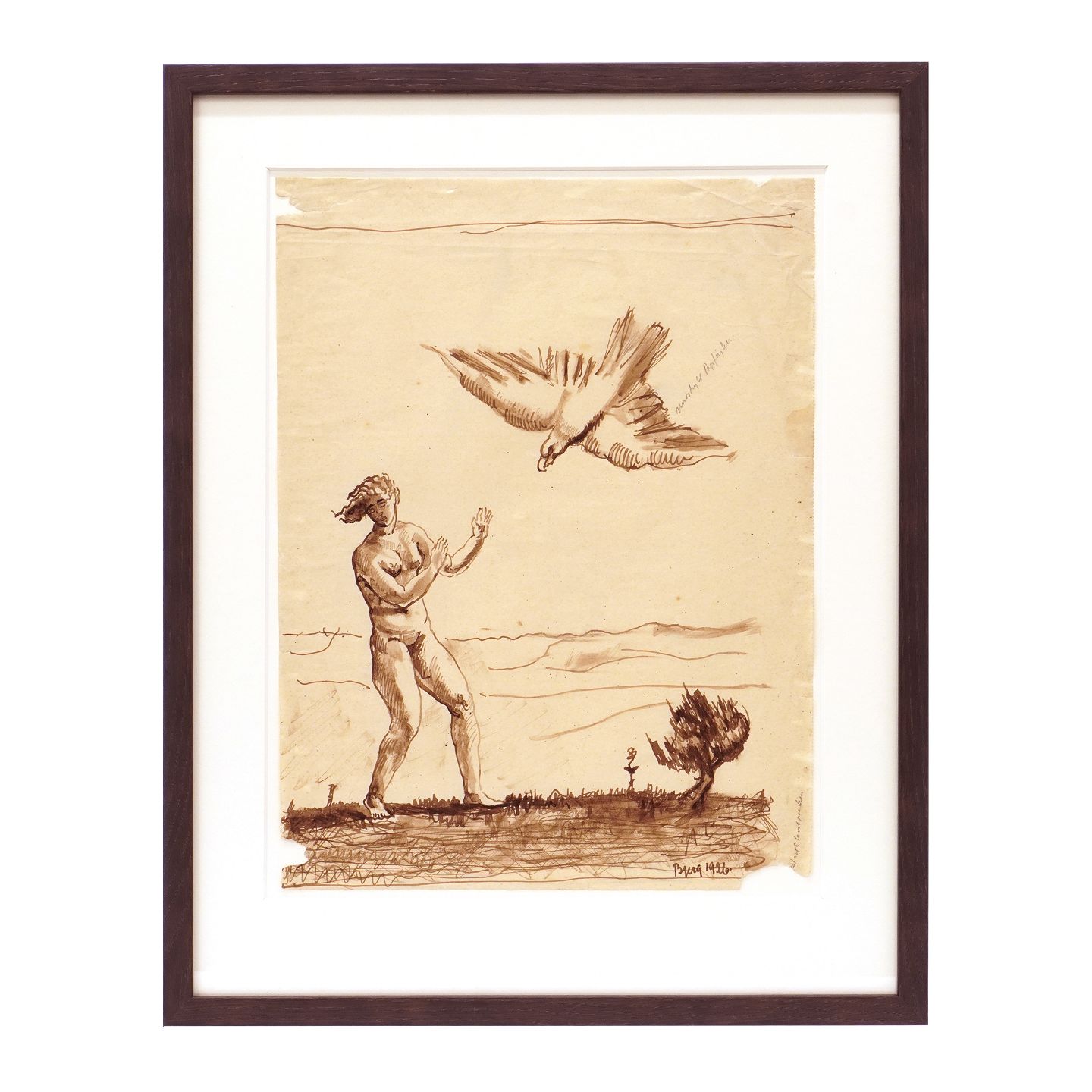 Johannes Bjerg, 1886-1955, tegning, blyant og tusch. Signeret "Bjerg 1926". Lysmål: 36x27cm. Med ramme: 47x38cm