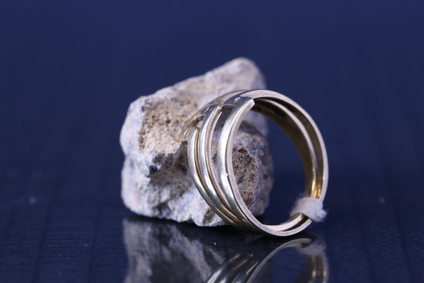 9 Karat gold collector's ring with 3 diamonds. Hallmark: 9 ct Size 58 / 18.46 mm. Beautiful and well-maintained condition. The item is not physically available in the store. Contact us for a demonstration