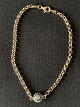 Gold chain in 14 carat gold, with turquoise and blue sapphires and inlaid brilliants. Stamped 585.