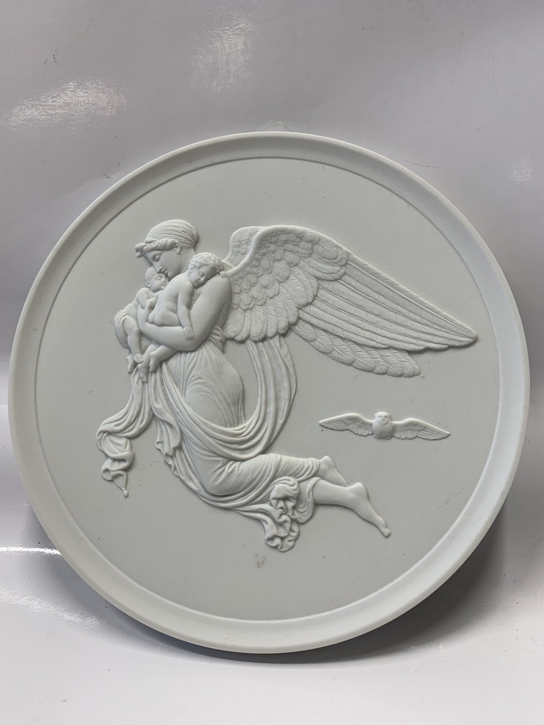 Royal Copenhagen Bisquit plate by Thorvaldsen, night.
