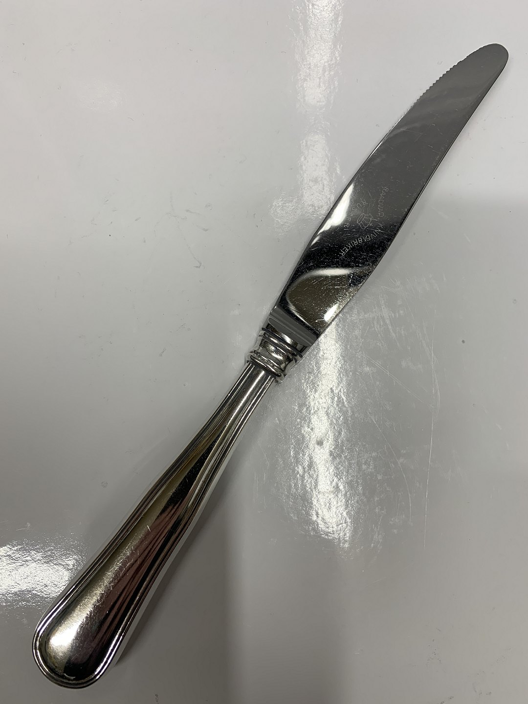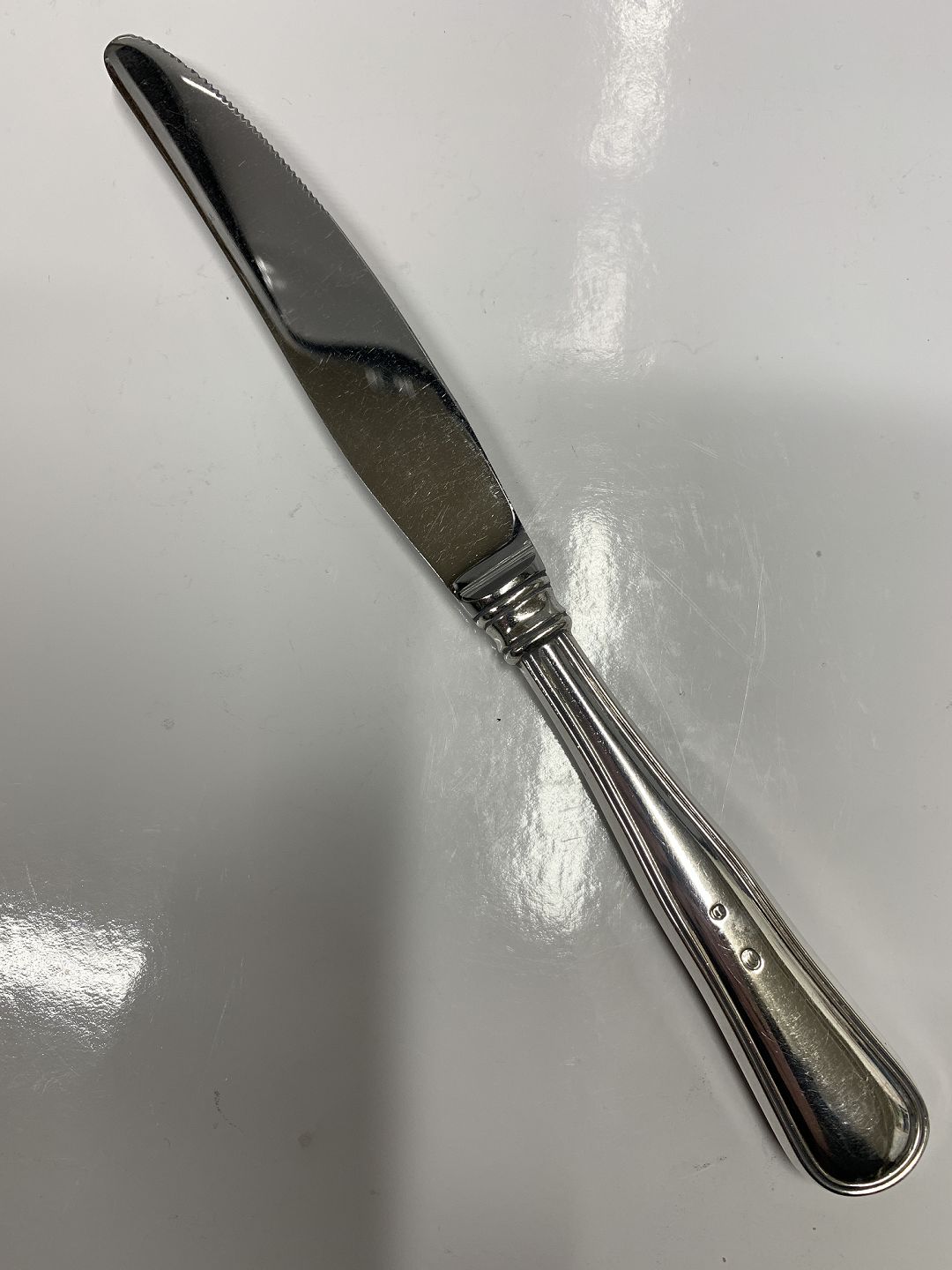Dobbeltriflet Sølv, Middagskniv med/ savskær Længde 22,1 cm. Velholdt stand Alt bestik poleret og pakke i pose