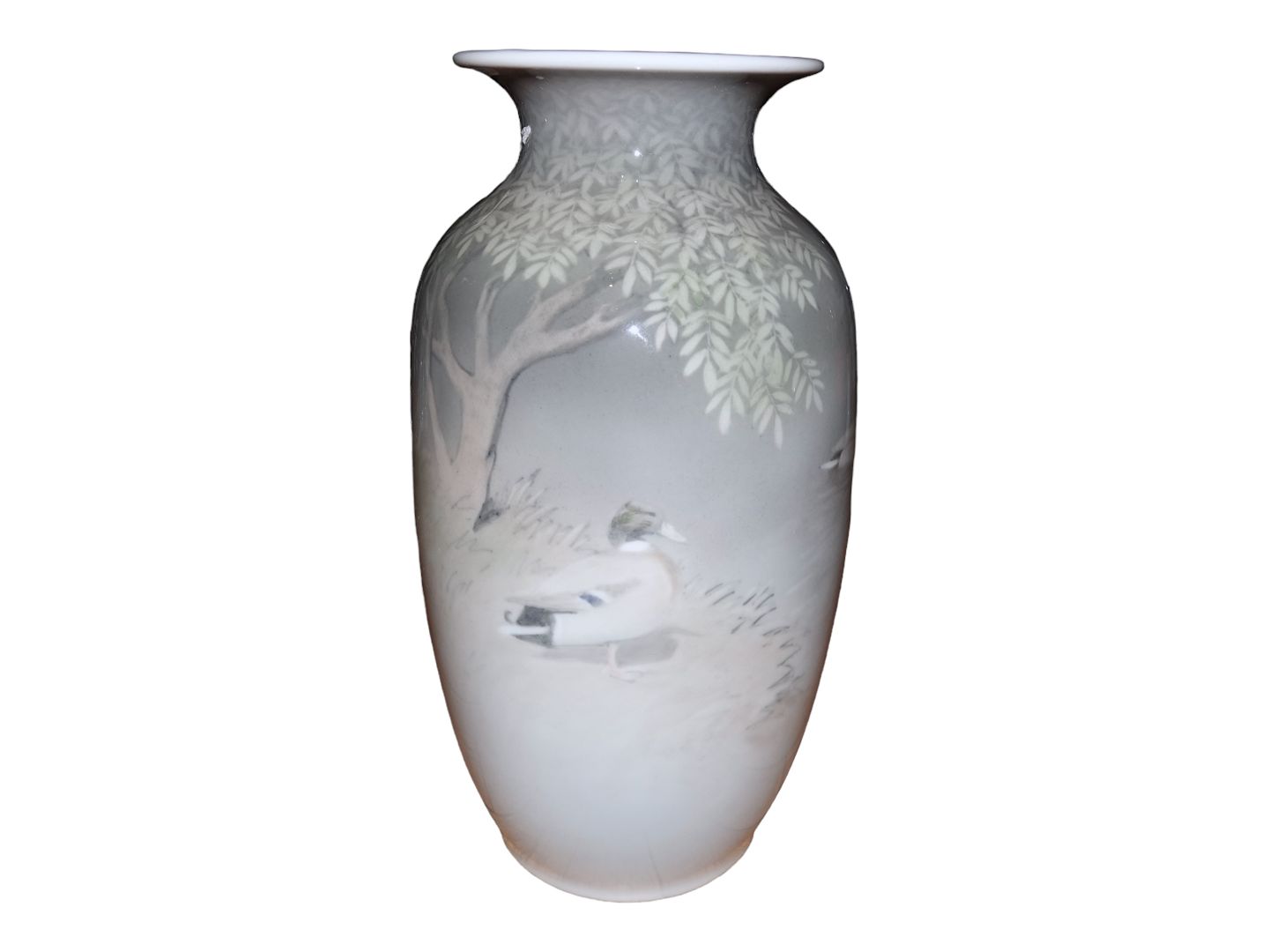 Royal Copenhagen Unique and large Art Nouveau vase decorated with ducks and signed by artist Vilhelm Theodor Fischer who died in 1928. This vase is dated May 11th. 1927.