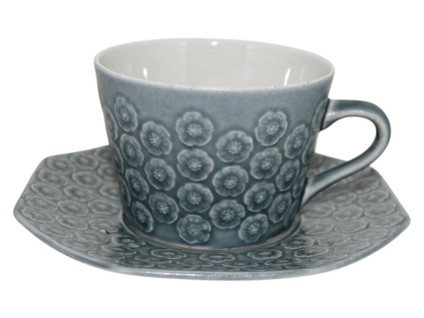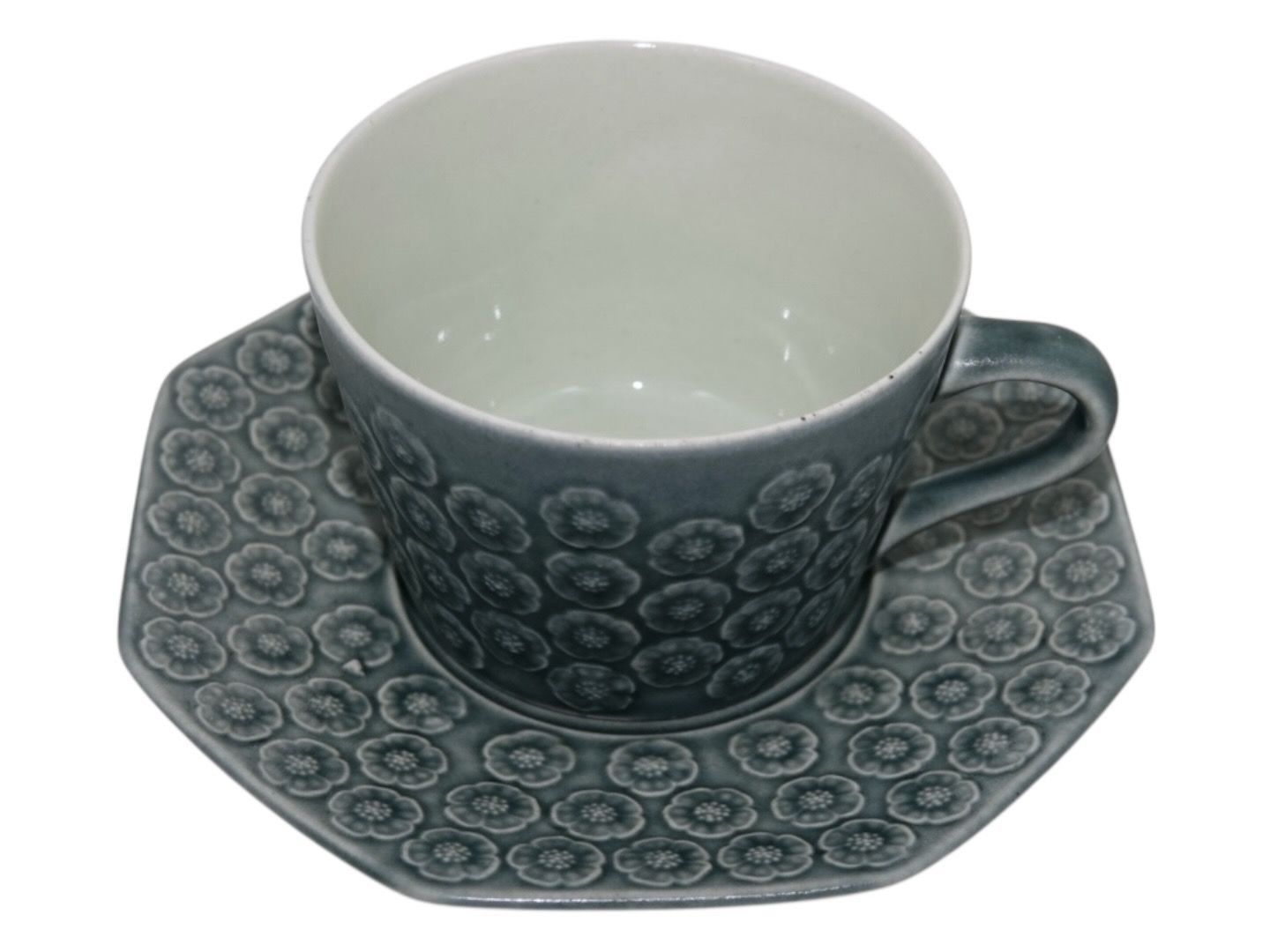 Kronjyden Azur stoneware, cup with matching saucer. Designed by Jens Harald Quistgaard. Diameter of the cup is 8.7 cm. Perfect condition.