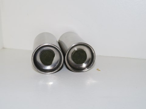 Stelton Cylinda Line salt- og peberbøsse. Designet af Arne Jacobsen. Højde 6,3 cm. Flot og velholdt stand. Prisen er for begge.