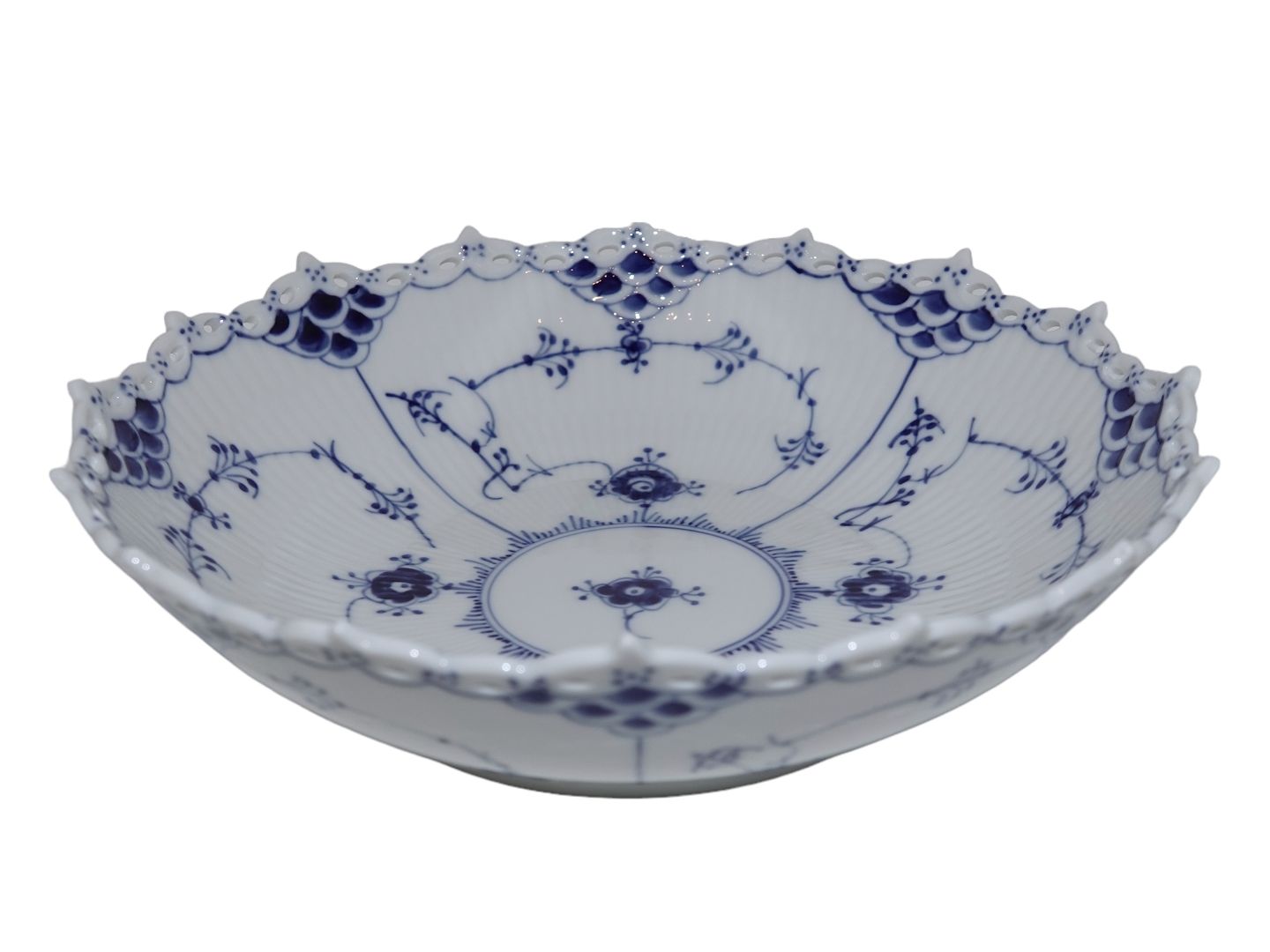 Royal Copenhagen Blue Fluted Full Lace, round bowl.