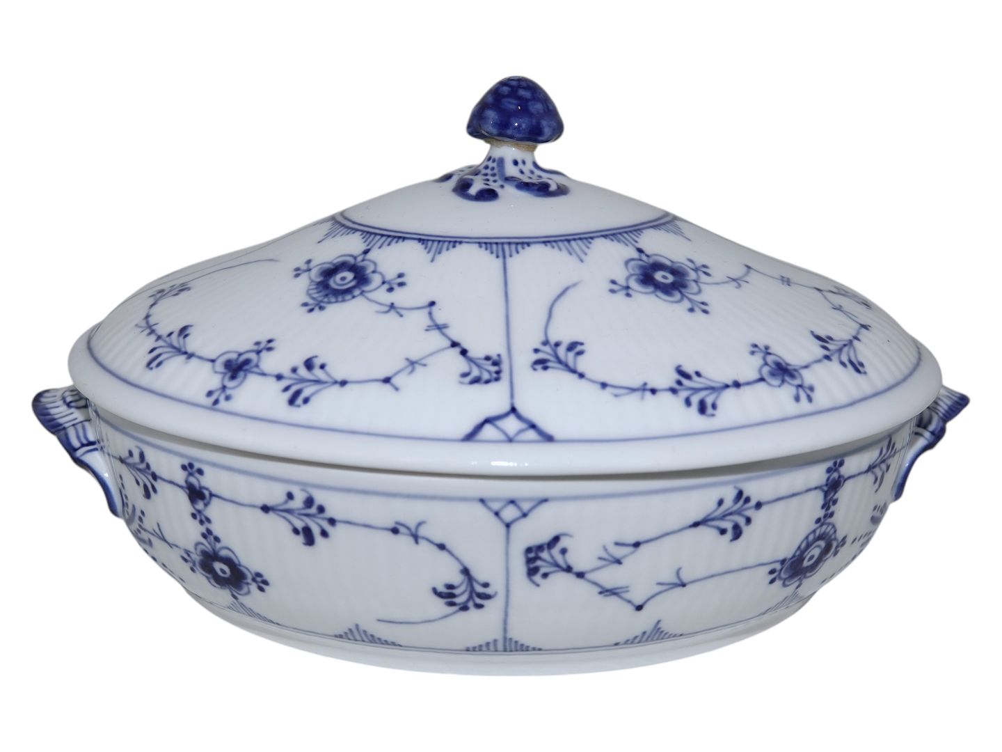 Royal Copenhagen Musselmalet Riflet, sjælden lille skål med låg (lille terrin).
