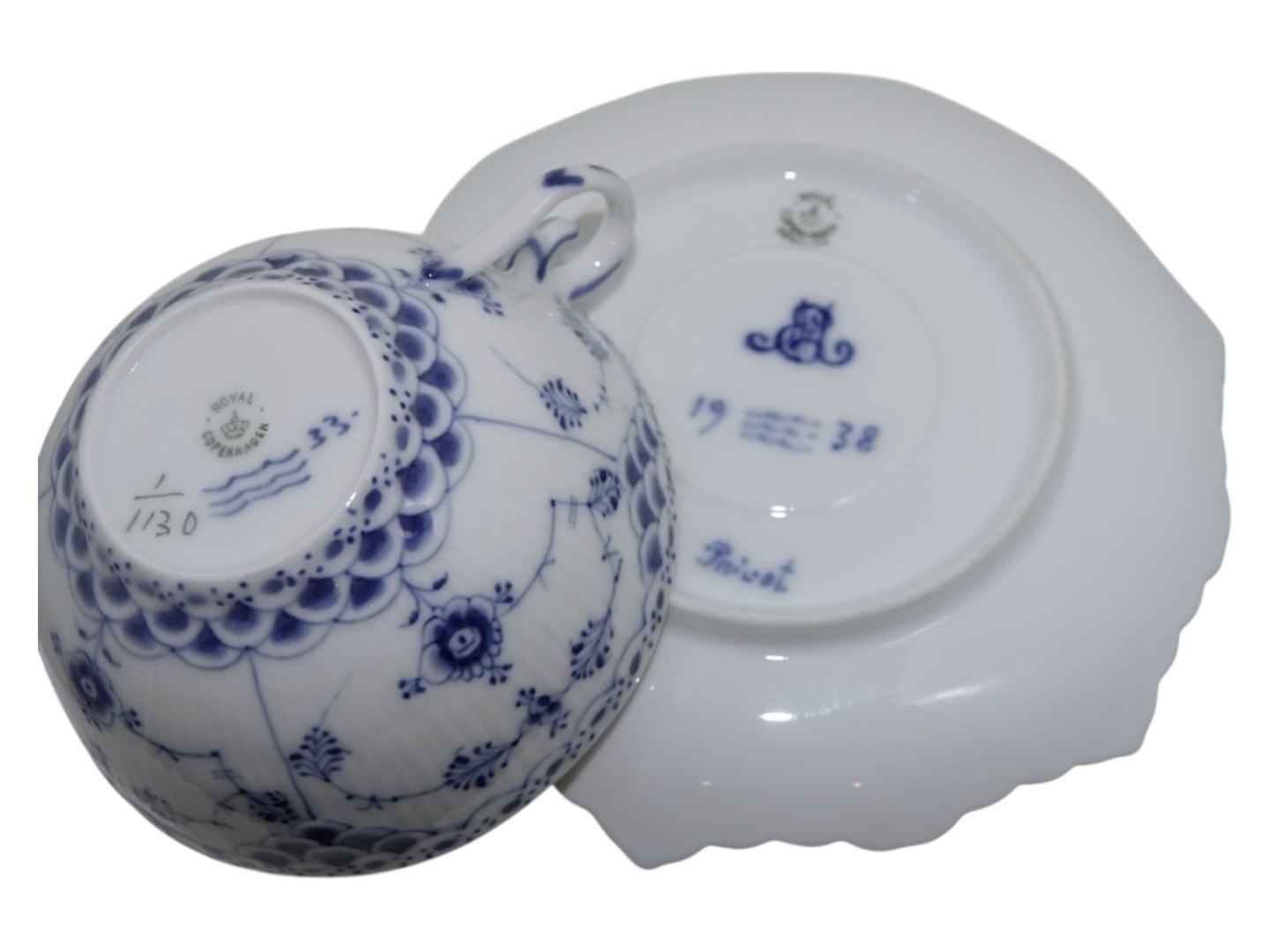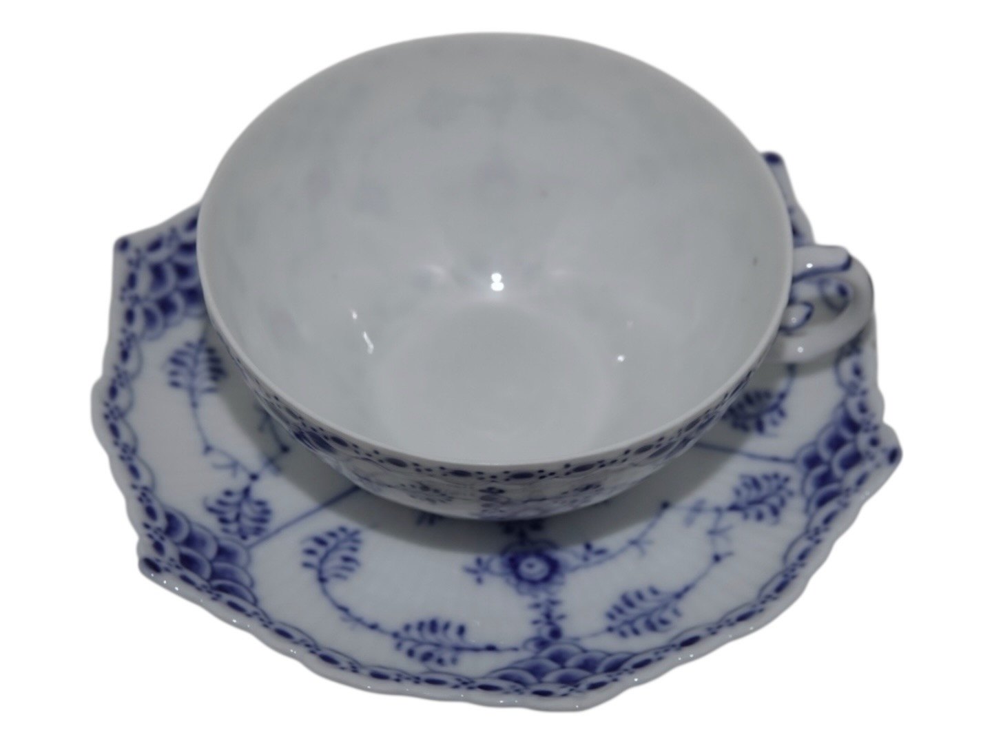 Royal Copenhagen Blue Fluted Full Lace, tea cup with matching saucer.
