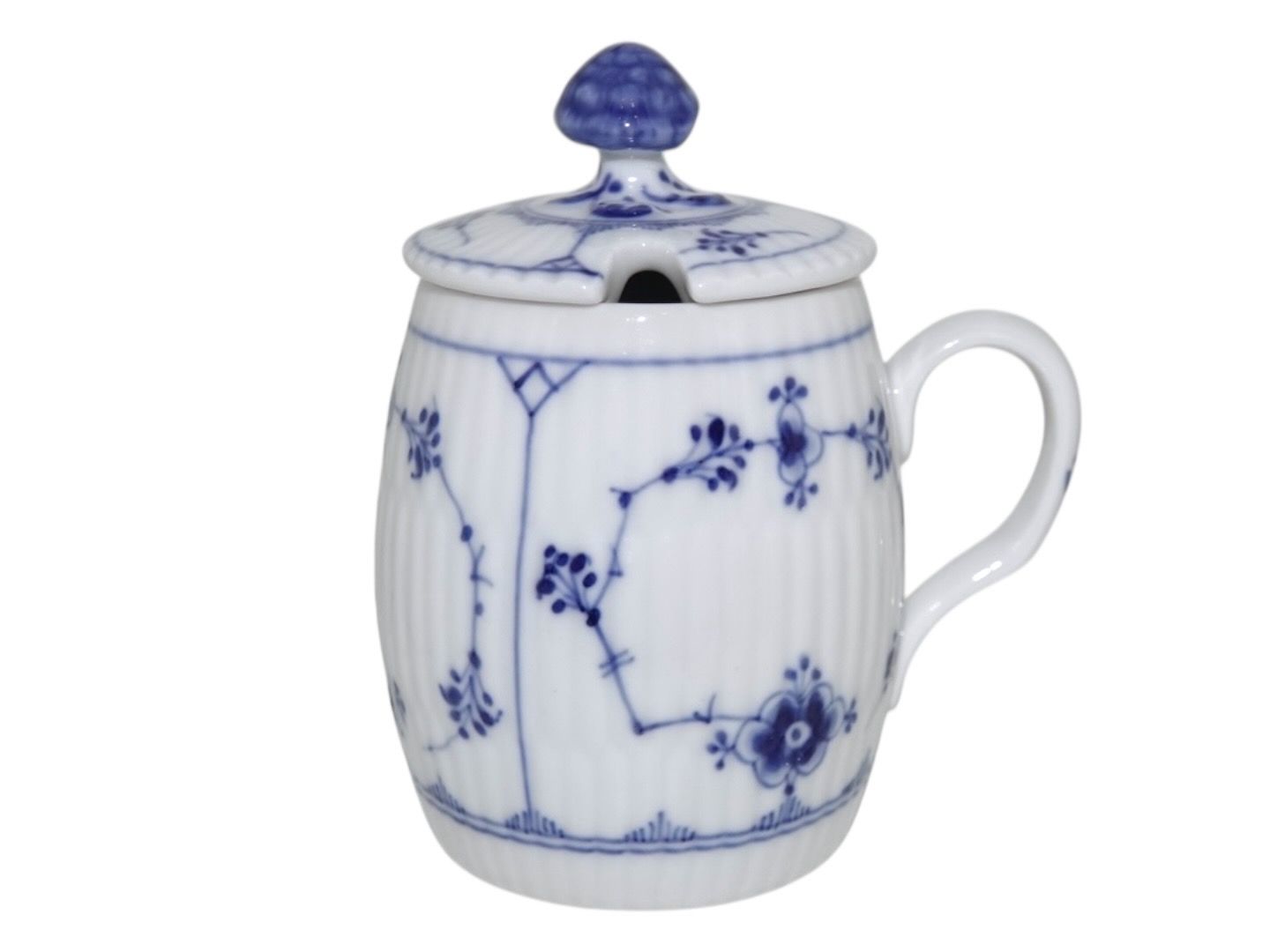 Royal Copenhagen Blue Fluted Plain, lidded mustard jar.