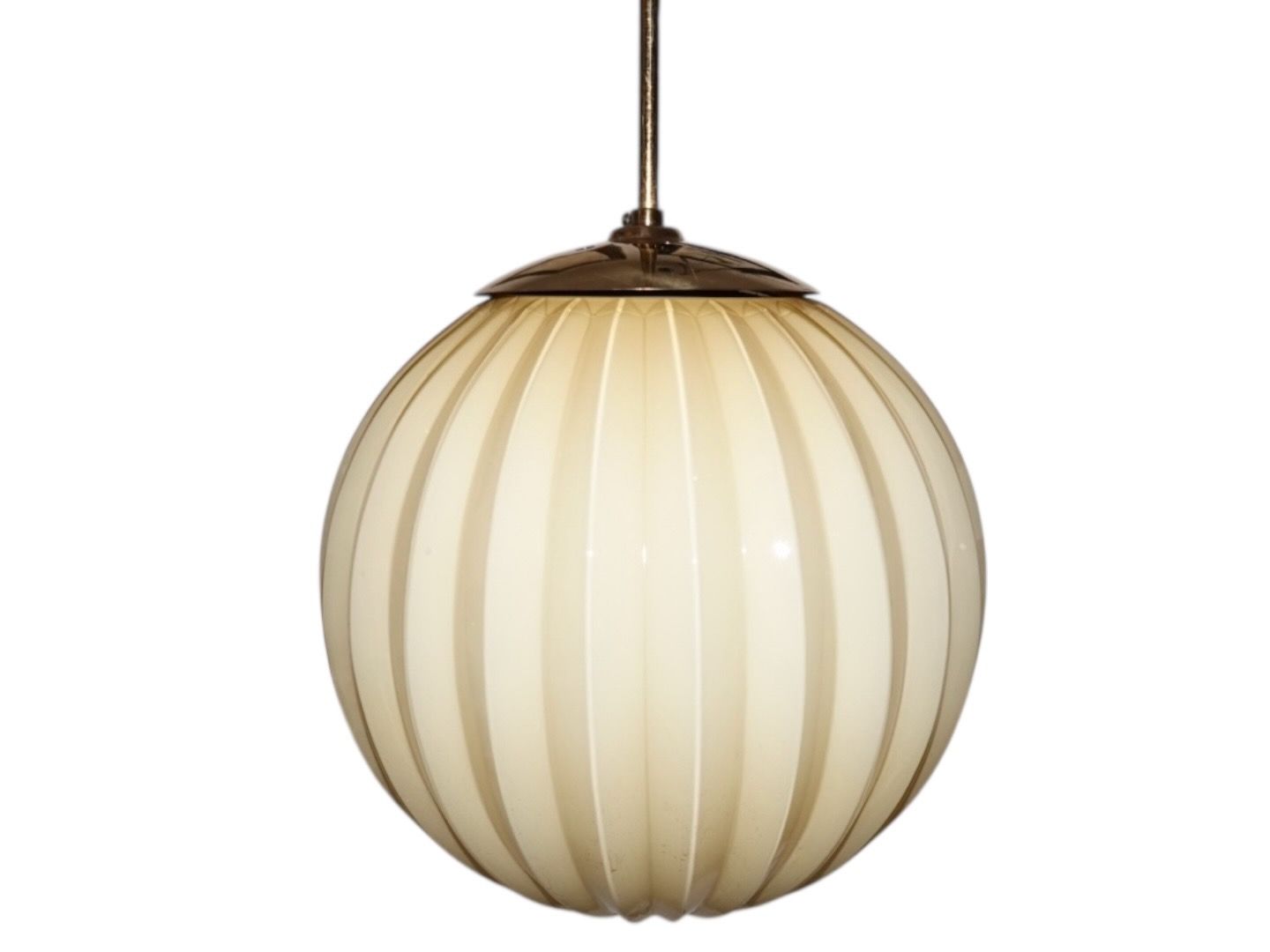 Art Deco loftslampe i cremefarvet rillet glas fra ca. 1940