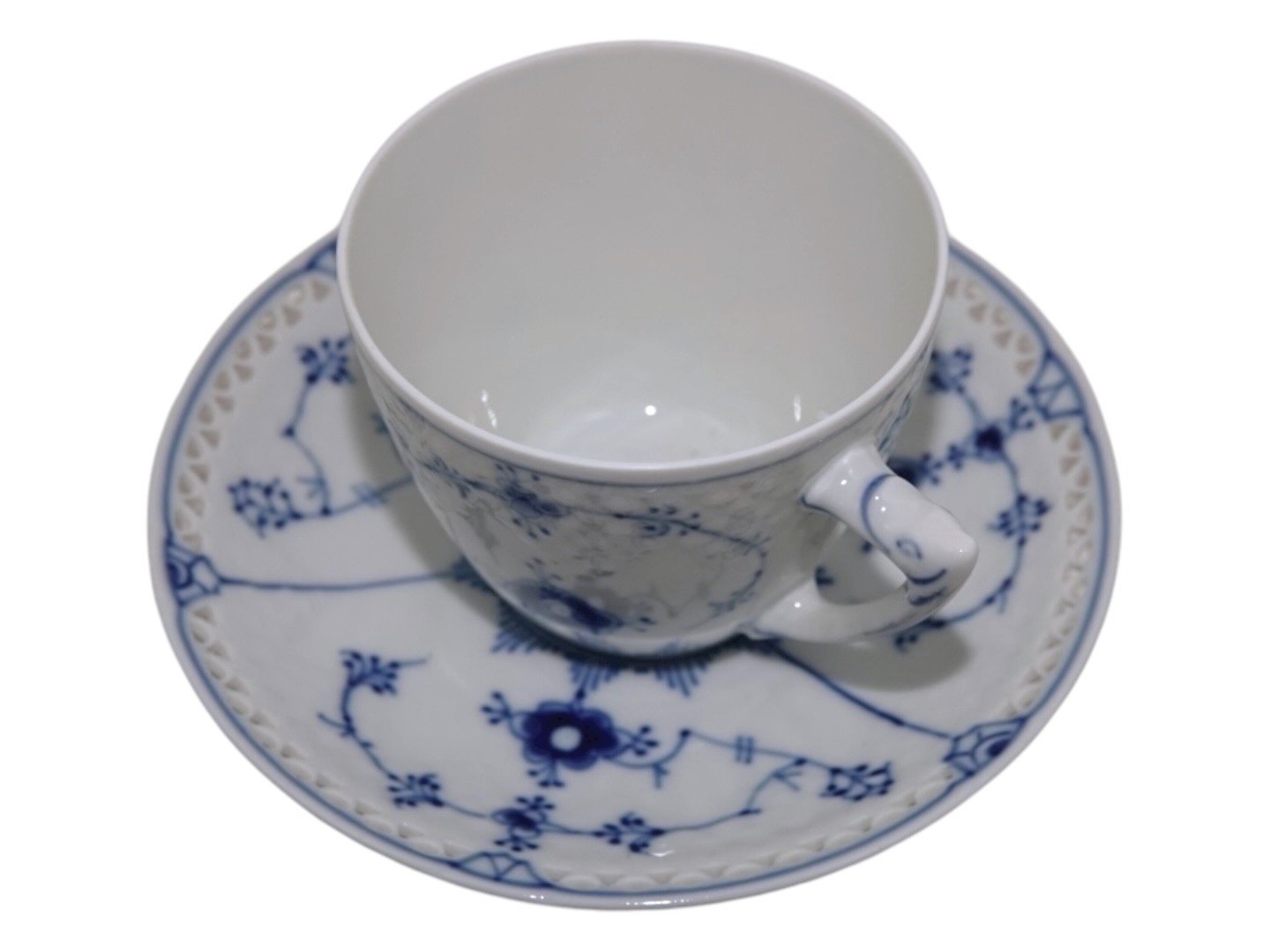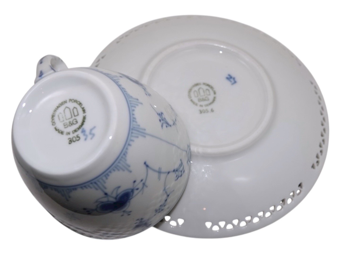 Bing & Grøndahl Blåmalet (Musselmalet), kaffekop med blondekant på underkoppen.