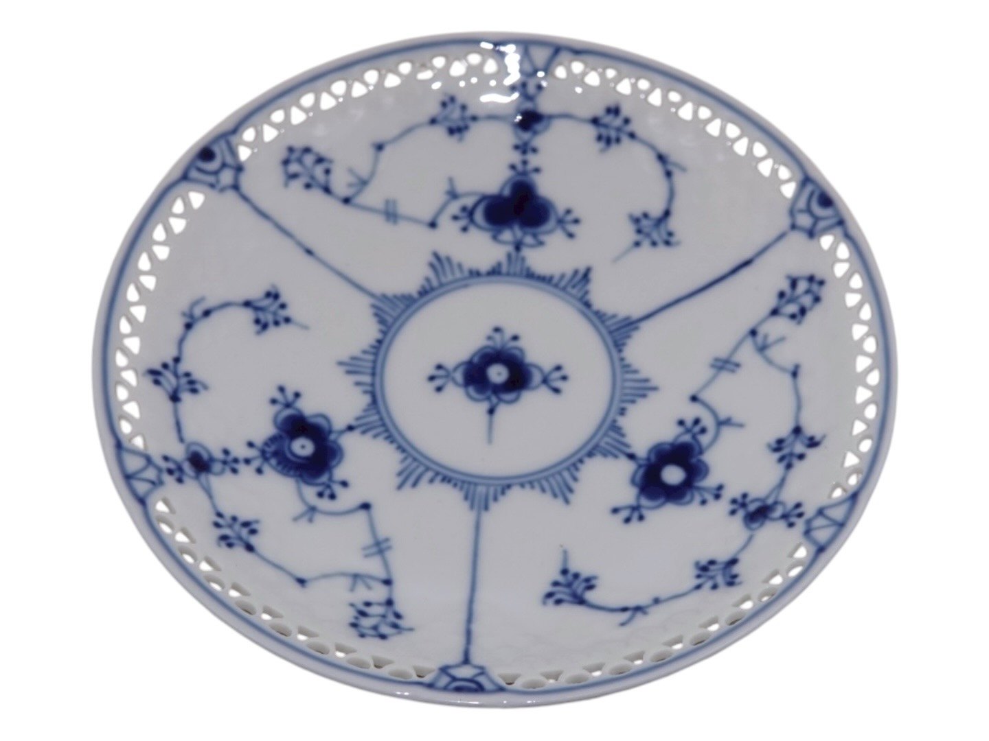 Blåmalet Riflet Lille rundt fad 27,5 cm.