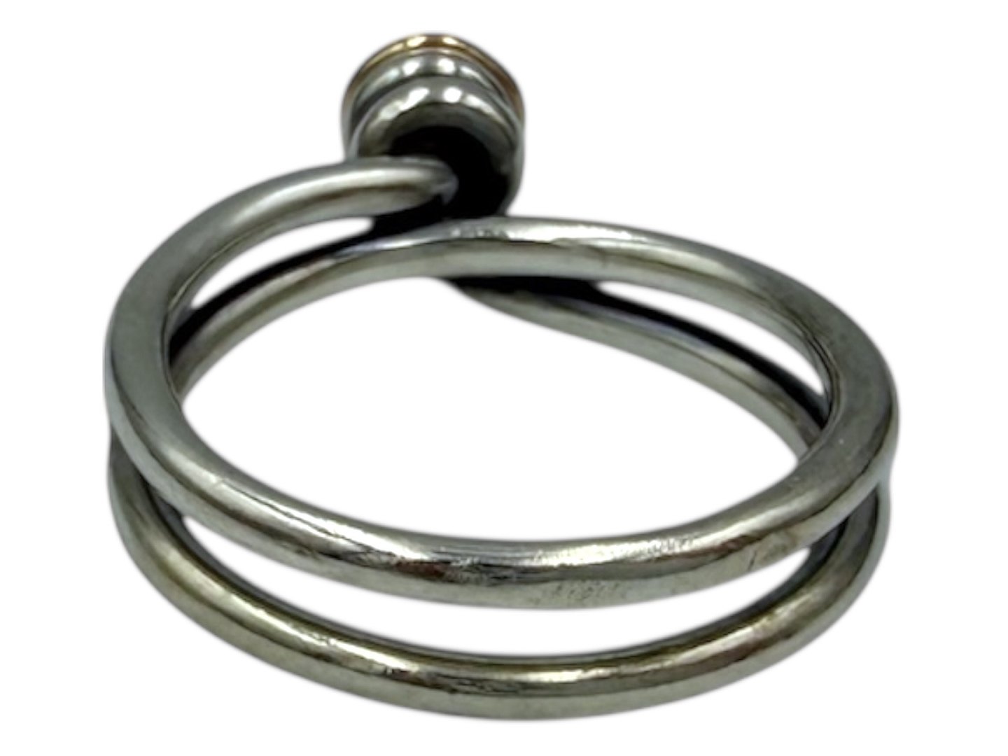 Sterlingsølv og 14 karat guld, moderne ring med sten. Stemplet "925 585". Ringstørrelse 58. Fin og velholdt stand.