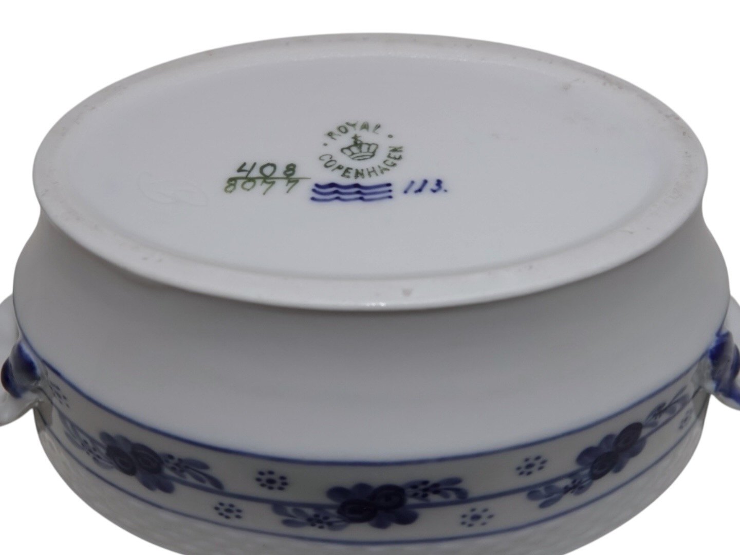 Royal Copenhagen Rosenknob / Blå Rose sjælden oval sukkerskål der mangler et låg.