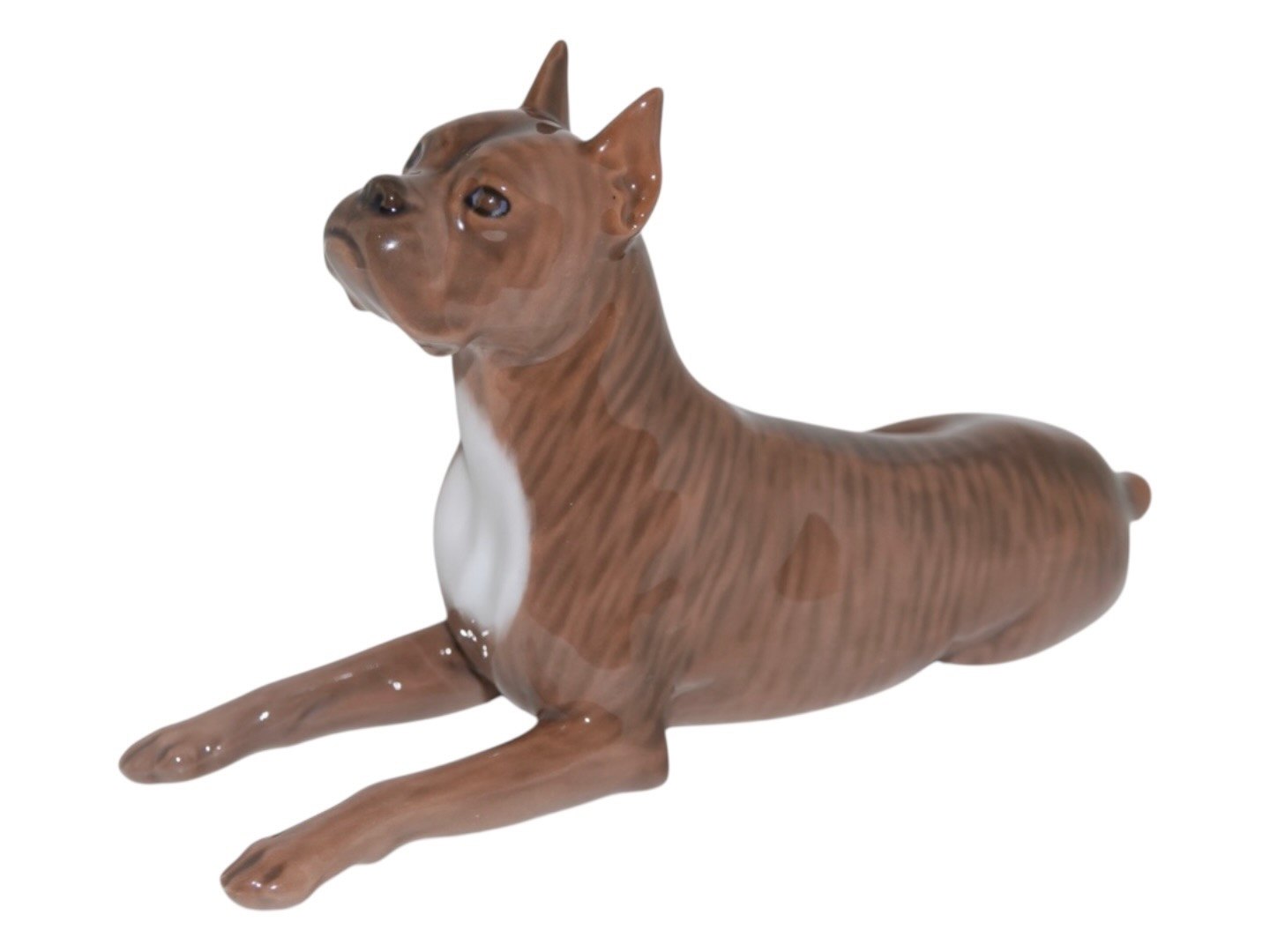 Royal Copenhagen hunde figur, liggende tysk boxer.