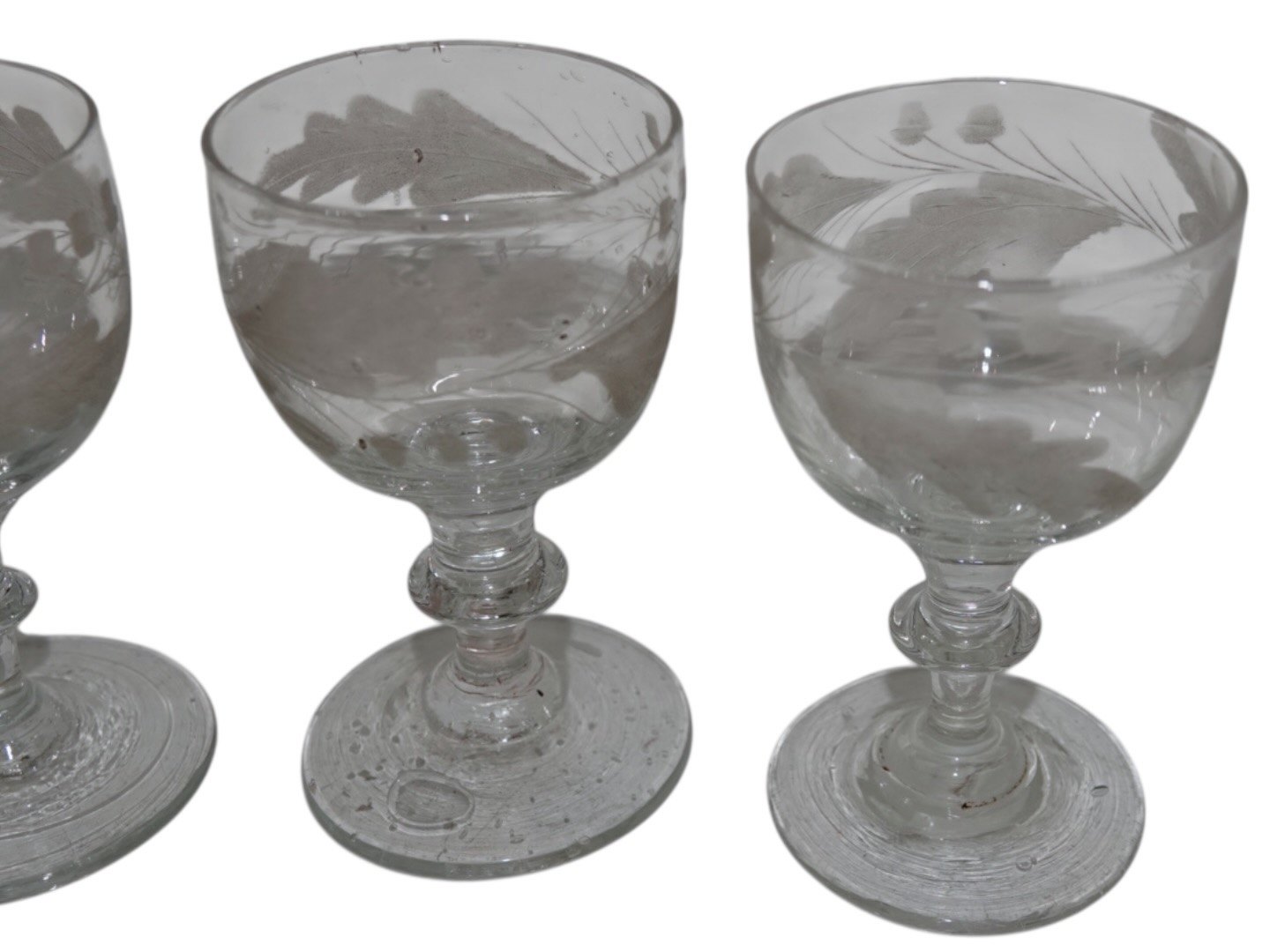 Stort portvinsglas med egeløvsslibninger.