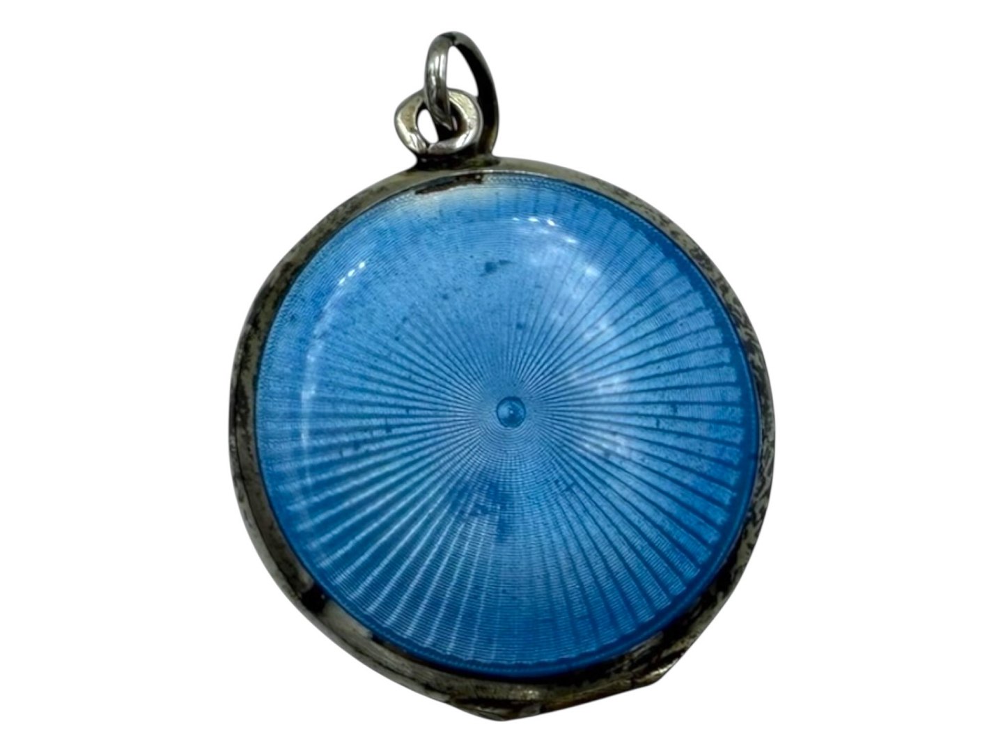Lille sølv medaljon med lyseblå emalje og indvendig forgyldt.