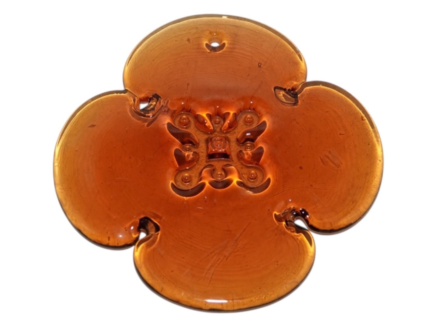Holmegaard, karamelfarvet solfanger i form af firkløver fra 1970'erne.