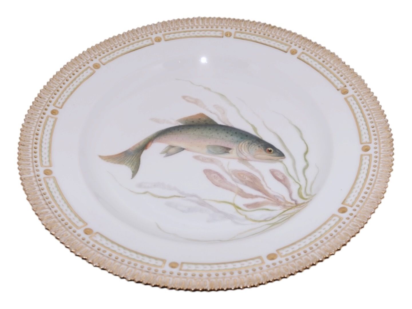 Royal Copenhagen Flora Danica, dinner plate decorated with a fish.