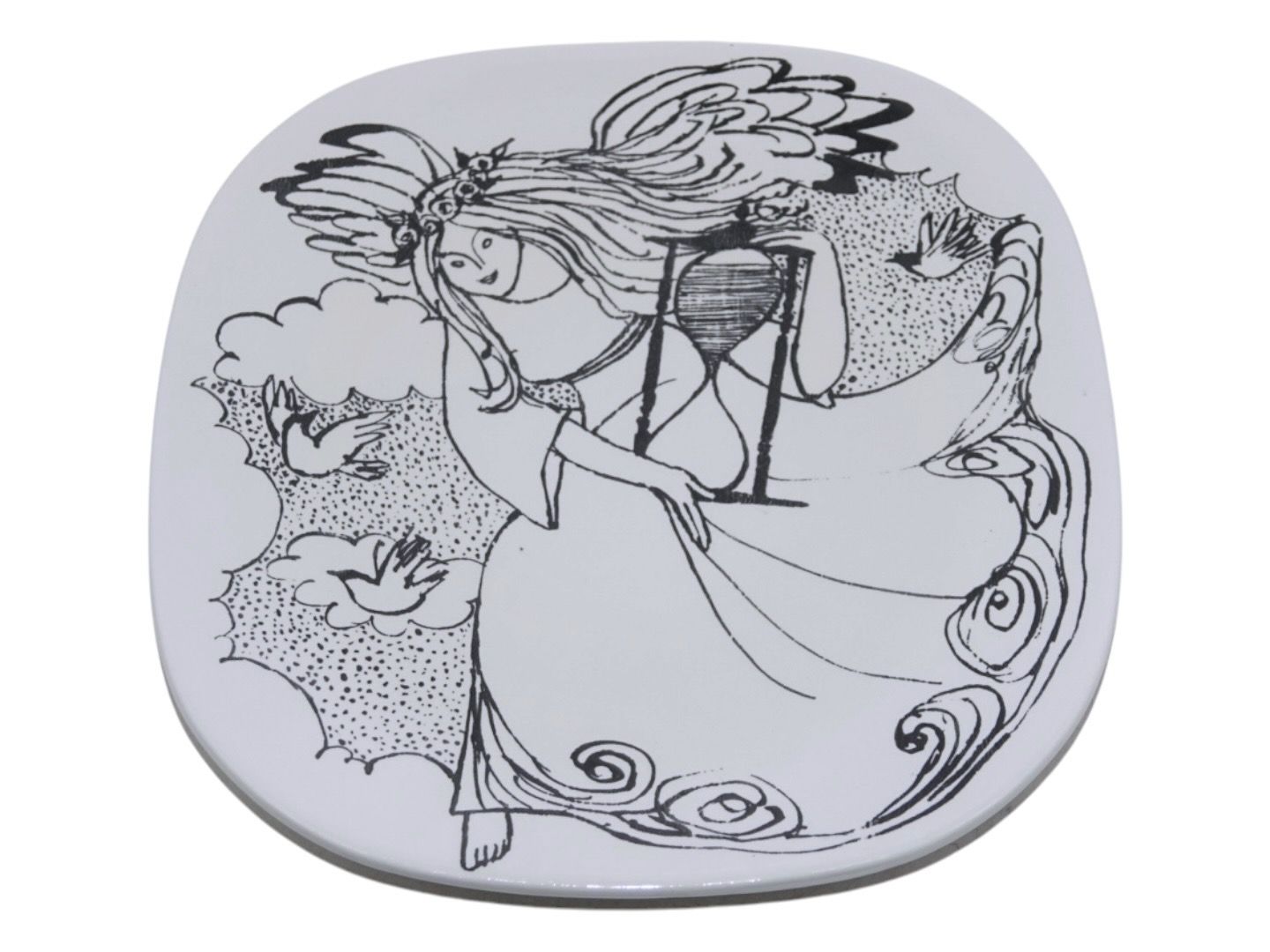 Sort Bjørn Wiinblad årsplatte 1973-1974. Produceret hos Nymølle Keramik. Måler 18,8 x 18,8 cm. Perfekt stand.