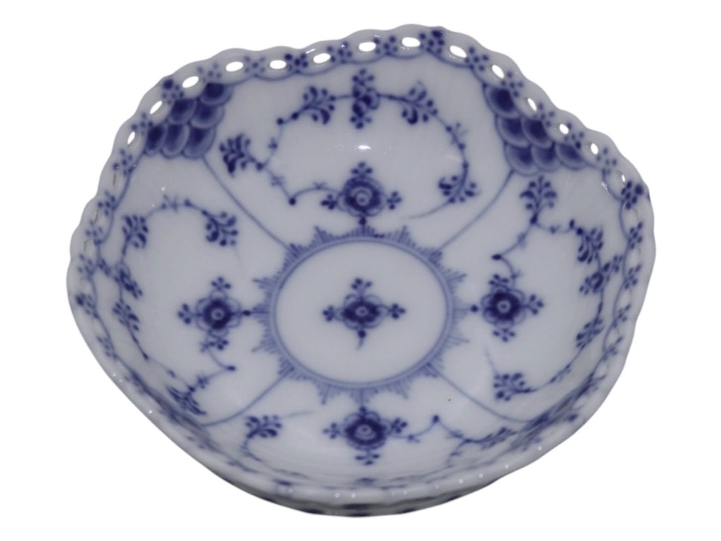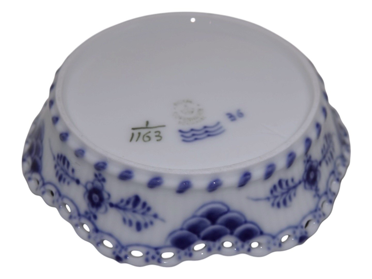 Royal Copenhagen Musselmalet Helblonde, lille asiet. Fabriksmærket viser, at denne er produceret mellem 1923 og 1928. Dekorationsnummer 1/1163. 1. sortering. Diameter 10,8 cm. Perfekt stand uden fejl.