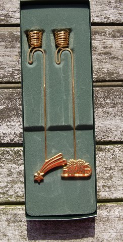 Georg Jensen Denmark Christmas decorations. Pair of candle holders in gilded brass, Star and Girl