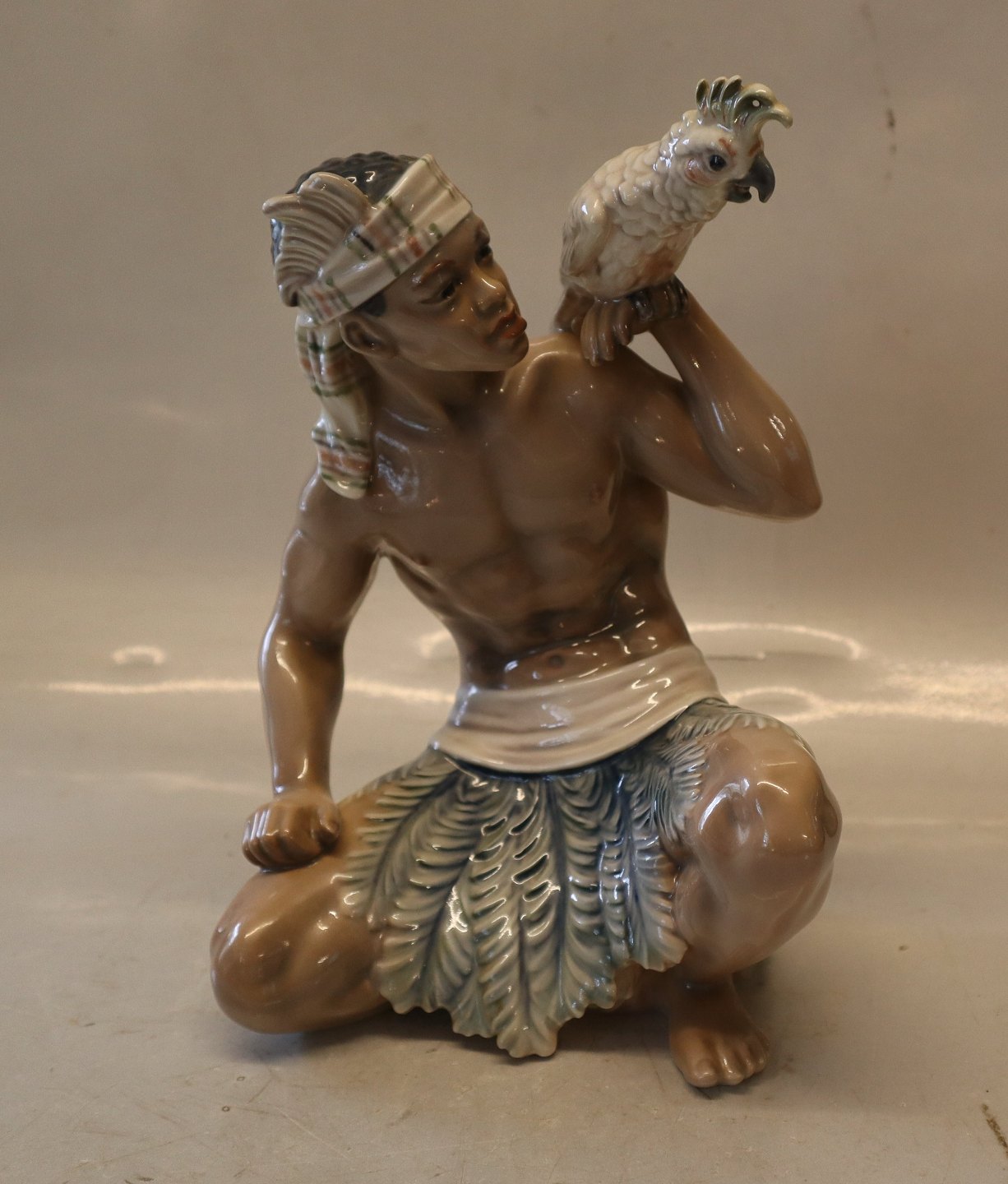 1 x 2. sorteringDahl Jensen 1305 Sudaner med kakadue 23 cm (DJ). Orientalsk mand med fugl. Mærket med kongelig krone og DJ Copenhagen i hel og fin stand.1305 Sudanese Man with cockatoo (DJ) 23 cm