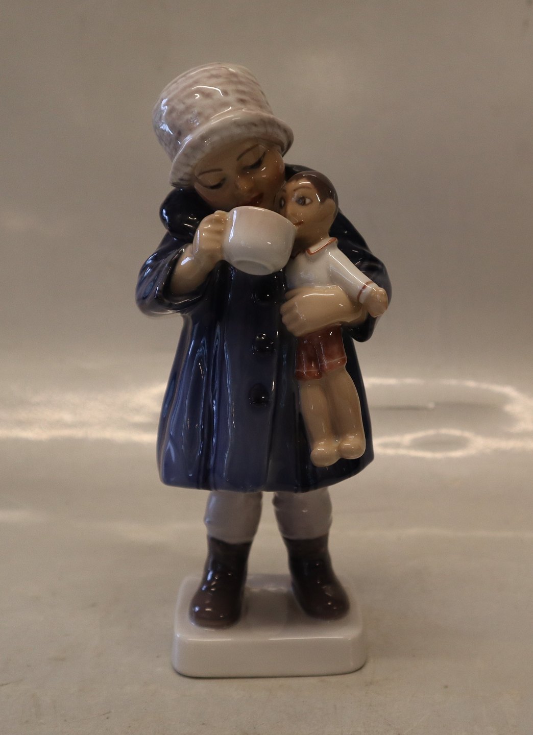 1 stk på lager 1. sortDahl Jensen 1106 Pige med dukke (DJ) 17,5 cm. Mærket med kongelig krone og DJ Copenhagen i hel og fin stand.