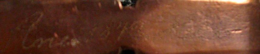 Antik æbleskivepande i kobber, 1842. På trefod med hank. Til 7 æbleskiver. Indvendig fortinnet. På hanken følgende inskription: Ane Haldner 1842. Proveniens: Sønderjysk familie.Emne nummer: 6948