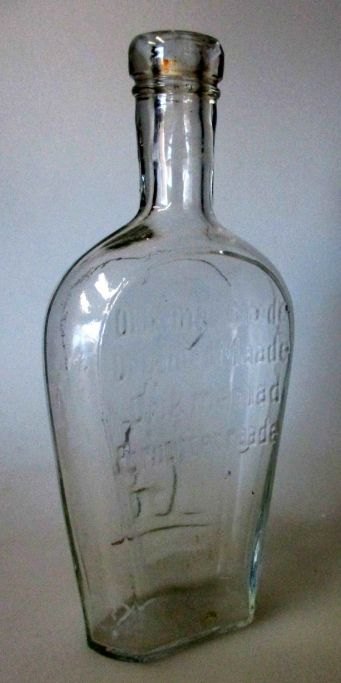 Lommelærke - snapse flaske - Fyens Glasværk, 1903. Danmark. Klar glas. Dekoration med Bissens tapre landsoldat. Højde.: 16,2 cm. På bagside teksten: Drik med glæde. Drik med Maade. Drik men lad Fornuften raade". Højde.: 16,2 cm. I bunden: 1/8 L. - svarende til 1/4 pot. Pt. 2 stk på lagerEmne nummer: 14903
