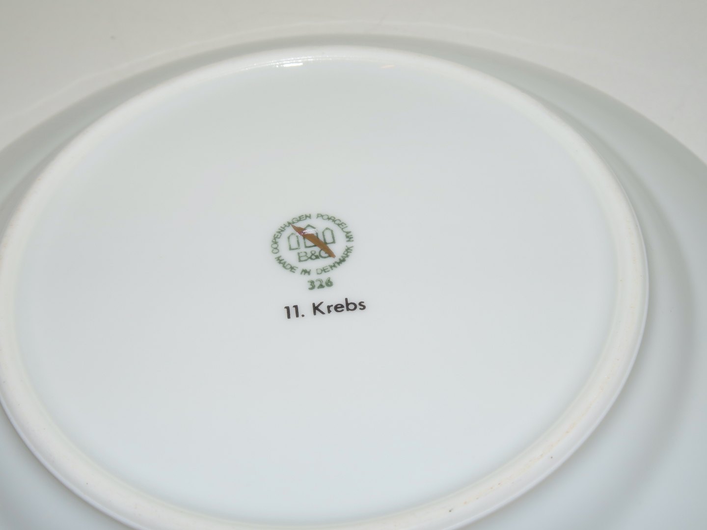 Bing & Grøndahl Måge med guldkant, fisketallerken med motiv nummer 11: Krebs.Dekorationsnummer 26 eller nyere nummer 326.