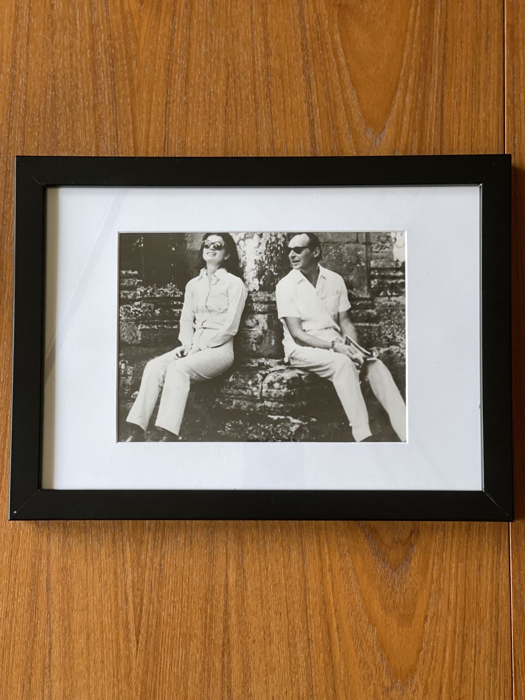 Original black and white photo of Jackie Kennedy and Lord Harlech in Cambodia in 1967. Lord Harlech was an adviser to Jackie Kennedy's late husband, President John F. Kennedy, during the Cuban Missile Crisis in 1962. The big question regarding Jackie Kennedy and Lord Harlech was brought up on February 29, 1968 in the magazine Paris Match, which wondered whether the mega-star Jackie Kennedy would marry Welsh Lord Harlech.The photo shows Jackie Kennedy and the British Lord Harlech sitting together in front of a temple in Cambodia.