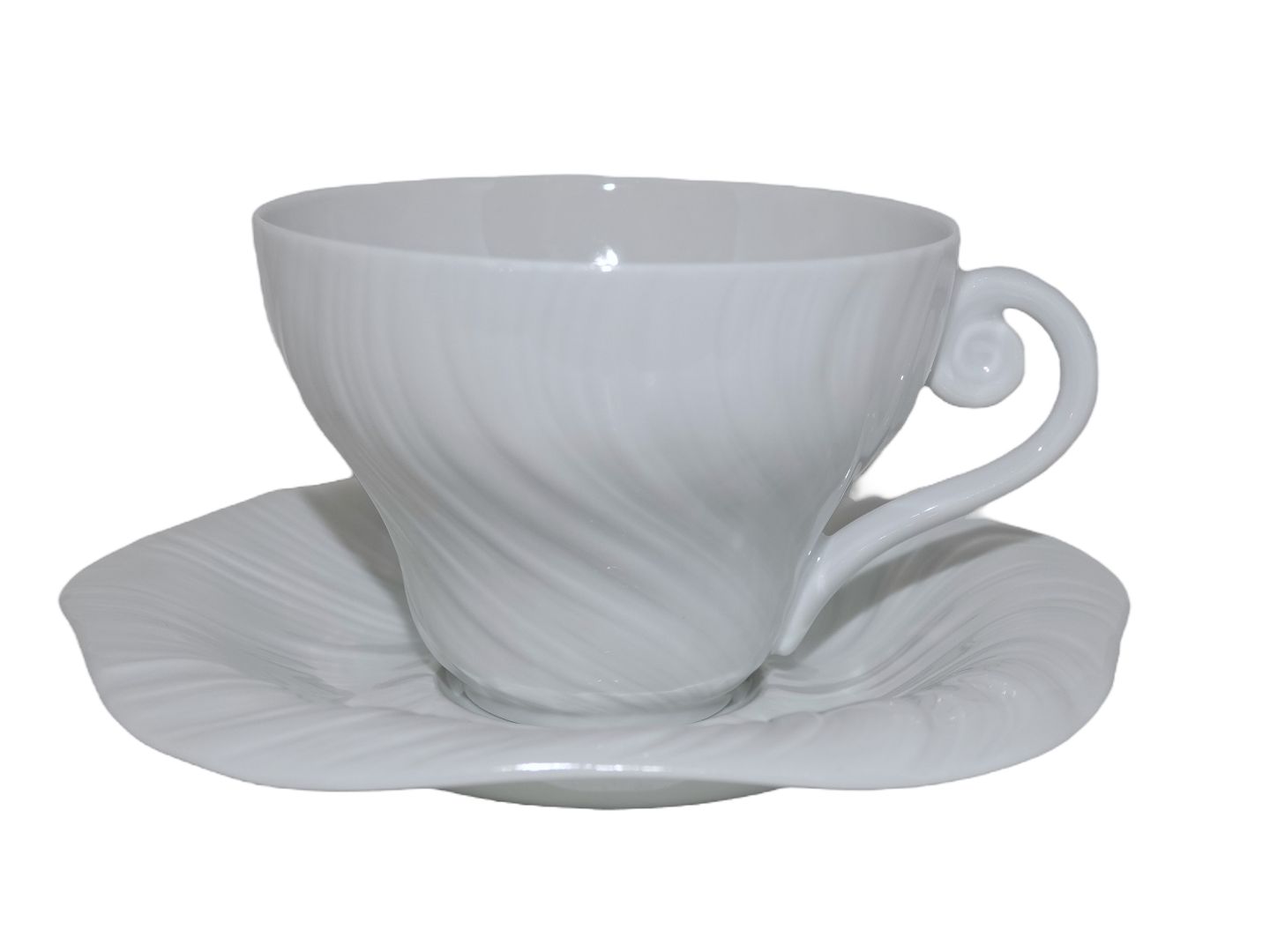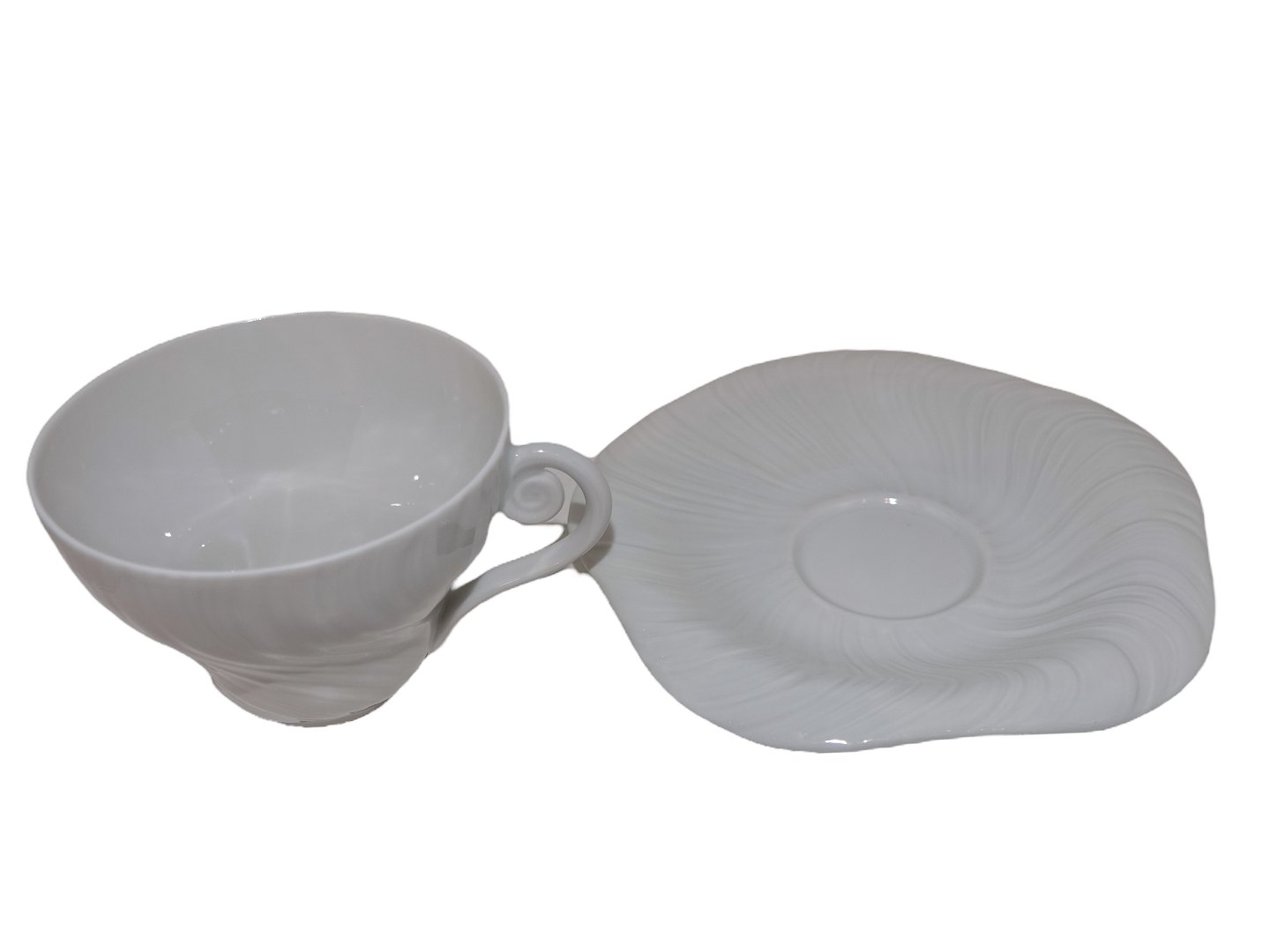 Royal Copenhagen Hvid Konkylie, stor kaffekop med tilhørende underkop.Designet af Arje Griegst i 1975.