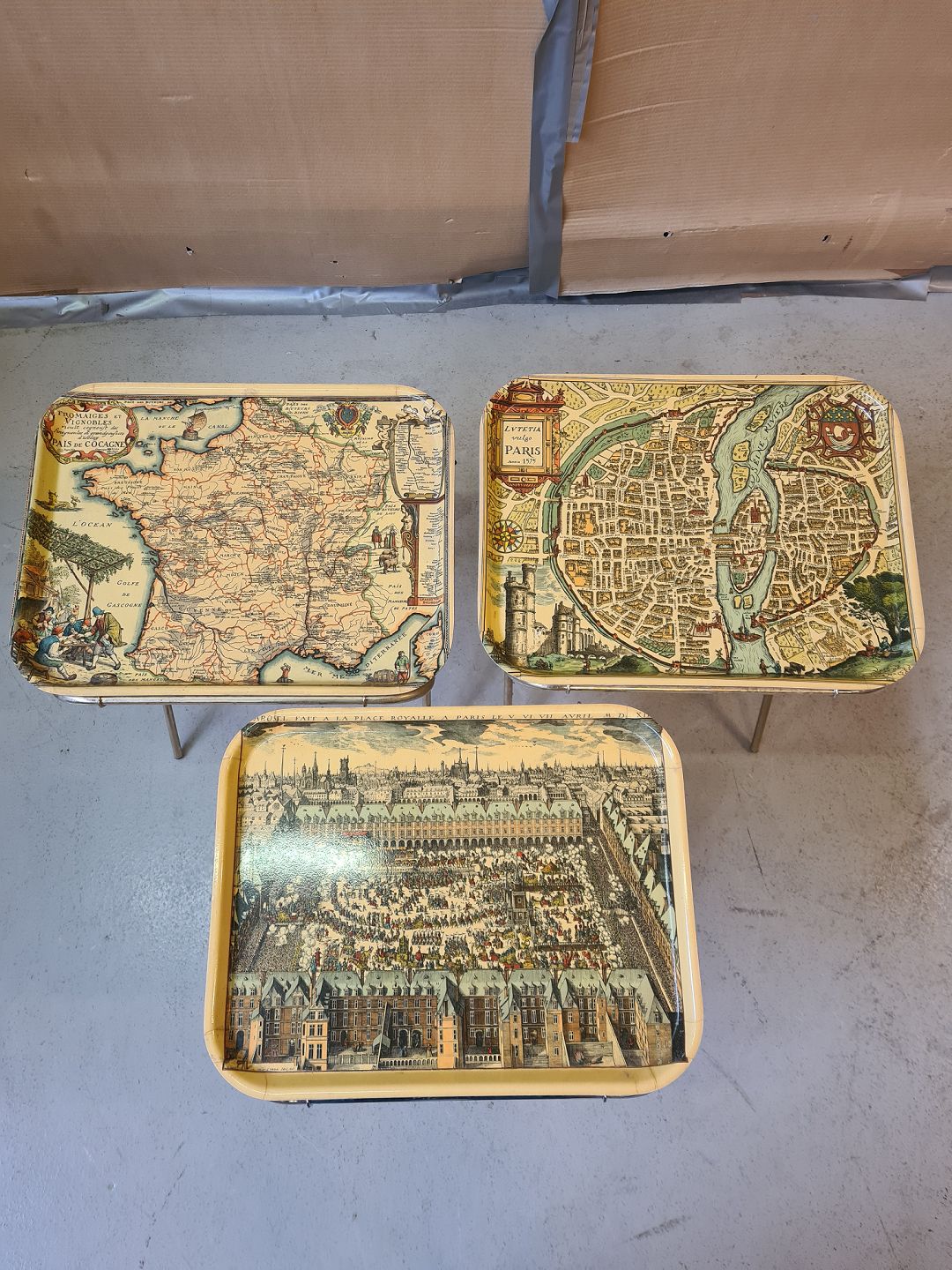3 Små bakkeborde i metal og plast, fra 1980-1990erne.H 47cm B 46cm D 36cm