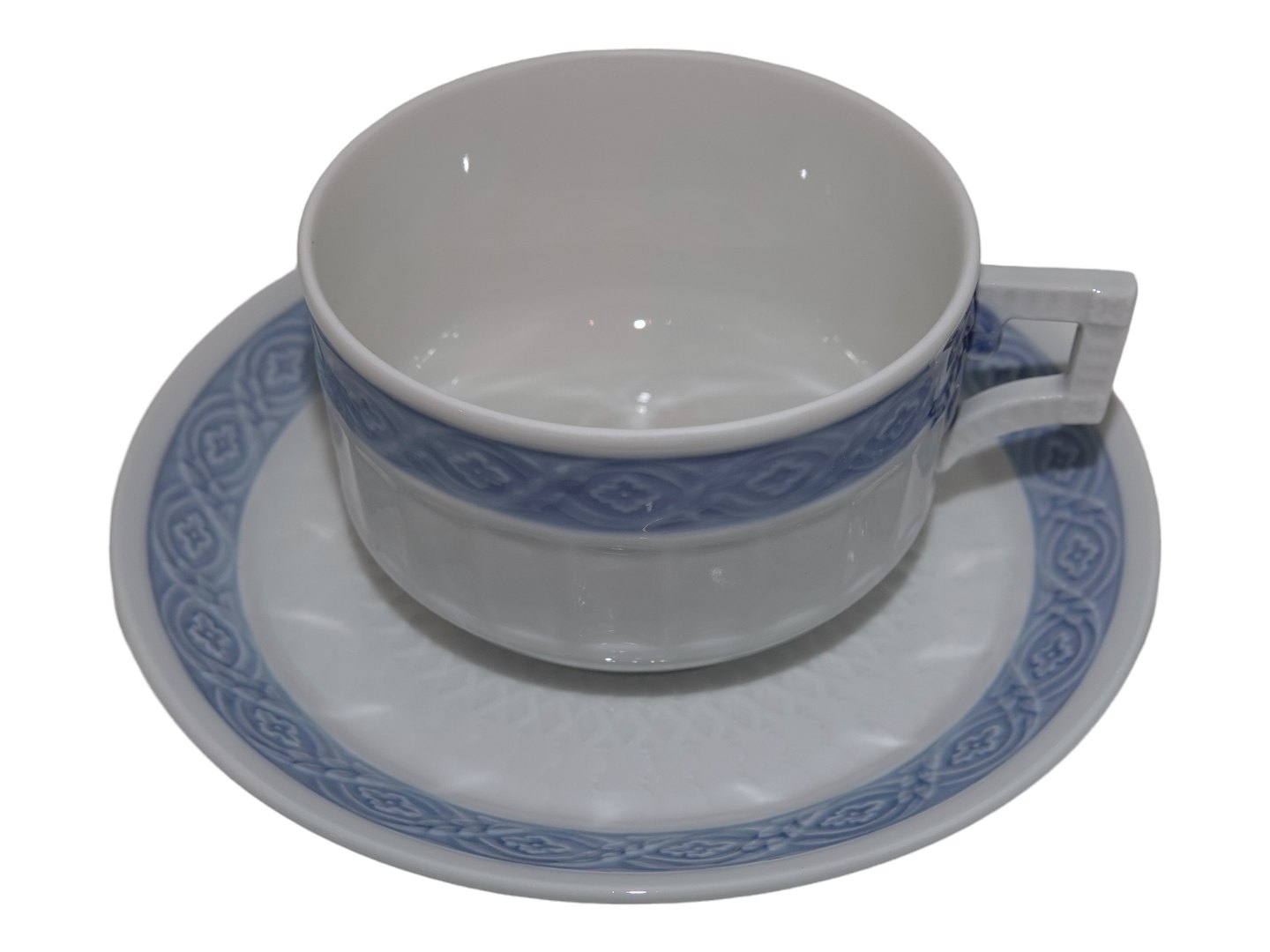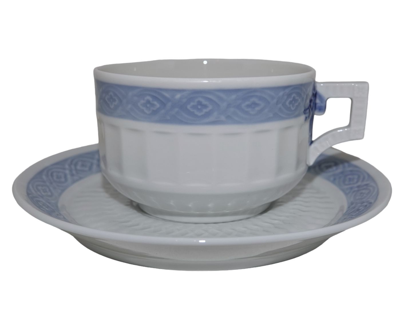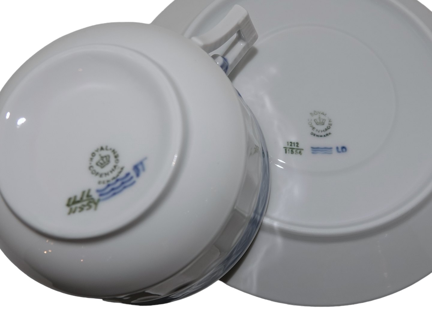 Royal Copenhagen Blå Vifte, ekstra stor morgenkop / chokoladekop med tilhørende underkop.Dekorationsnummer 1212/11554.