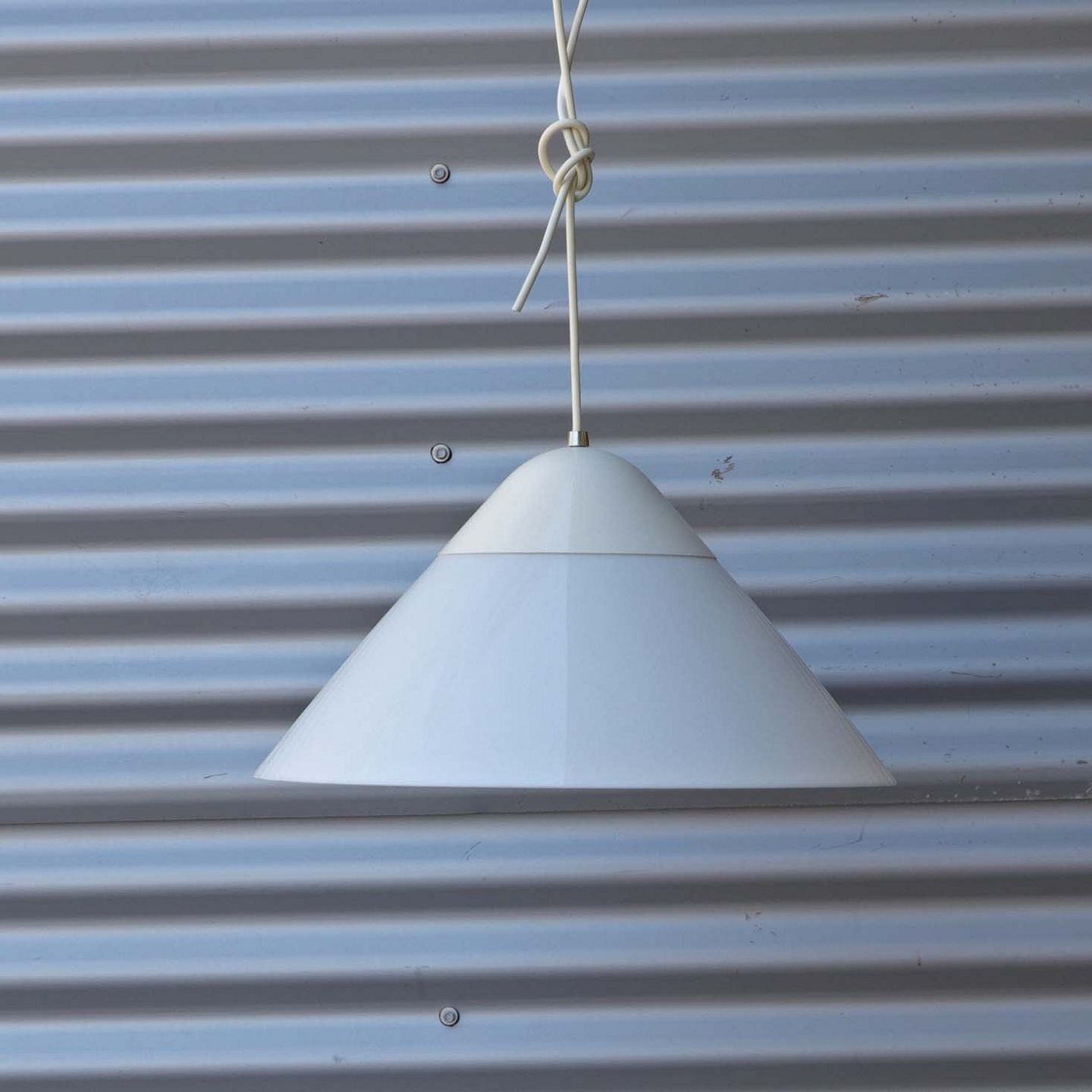 Pendel med hvidlakeret top og skærm i hvidt plast model Opala miniDesigner Hans J. Wegner