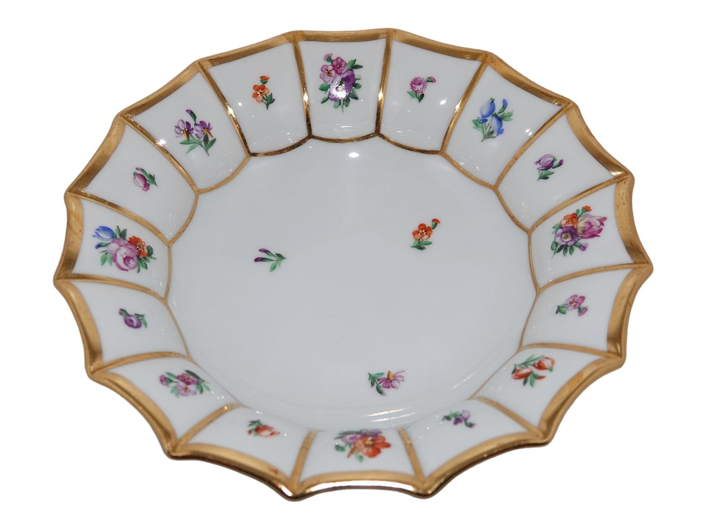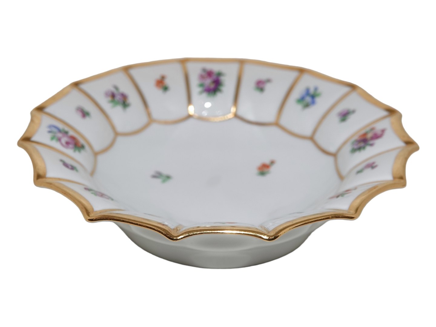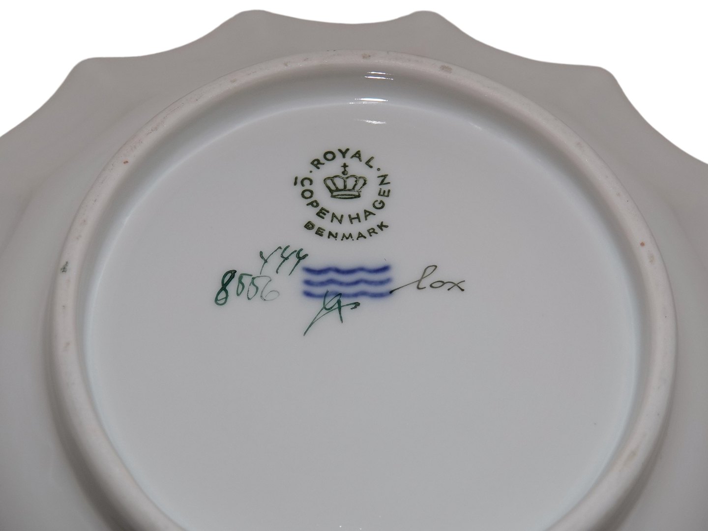 Royal Copenhagen Henriette, lille rund kageskål med bølget kant.Dekorationsnummer 444/8556.