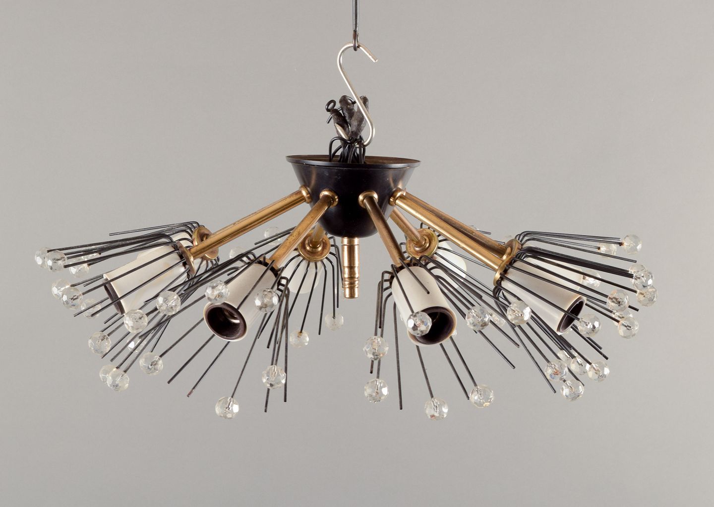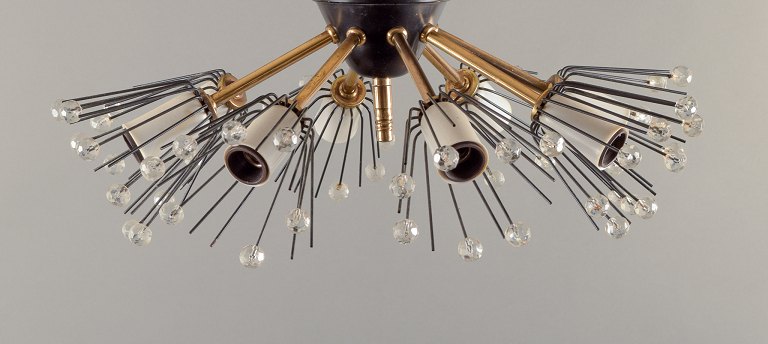 Emil Stejnar for Rupert Nikoll, Austria.Eight-armed ceiling lamp in brass, metal, and acrylic prisms.