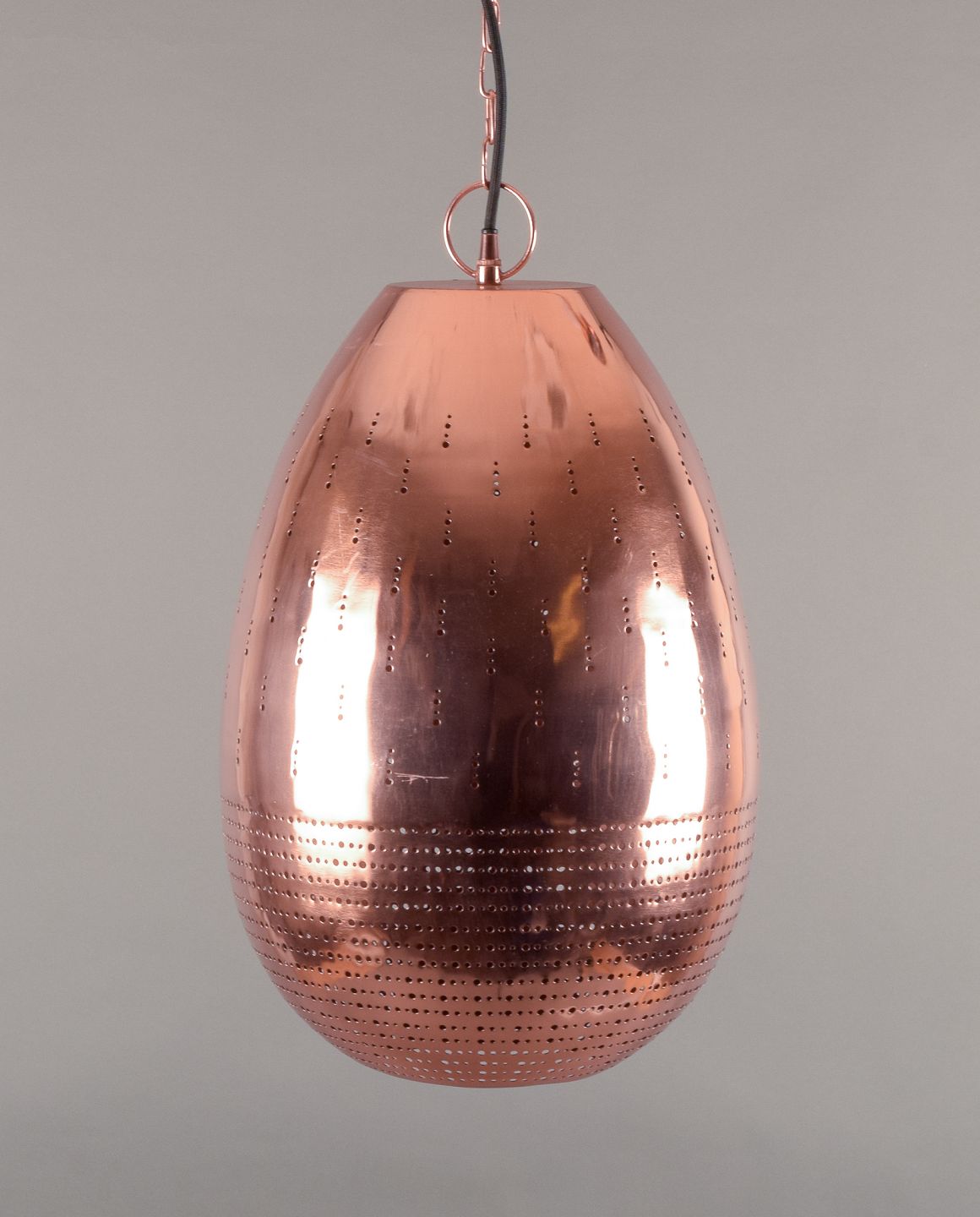 Hedemann, Denmark. Large "Chili" ceiling pendant in copper-patinated metal.Egg-shaped. Designed with circles.