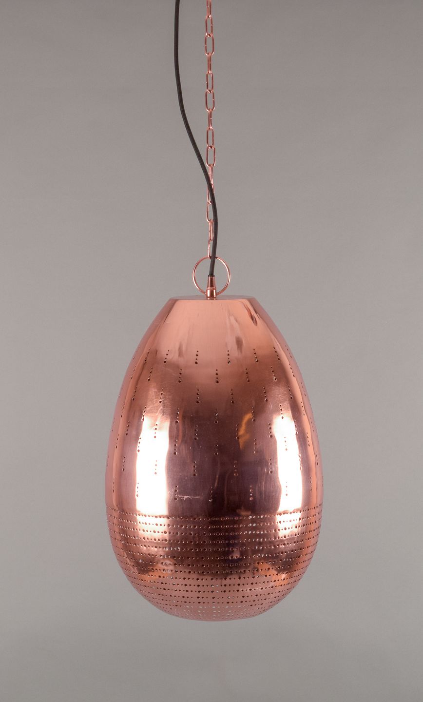 Hedemann, Denmark. Large "Chili" ceiling pendant in copper-patinated metal.Egg-shaped. Designed with circles.
