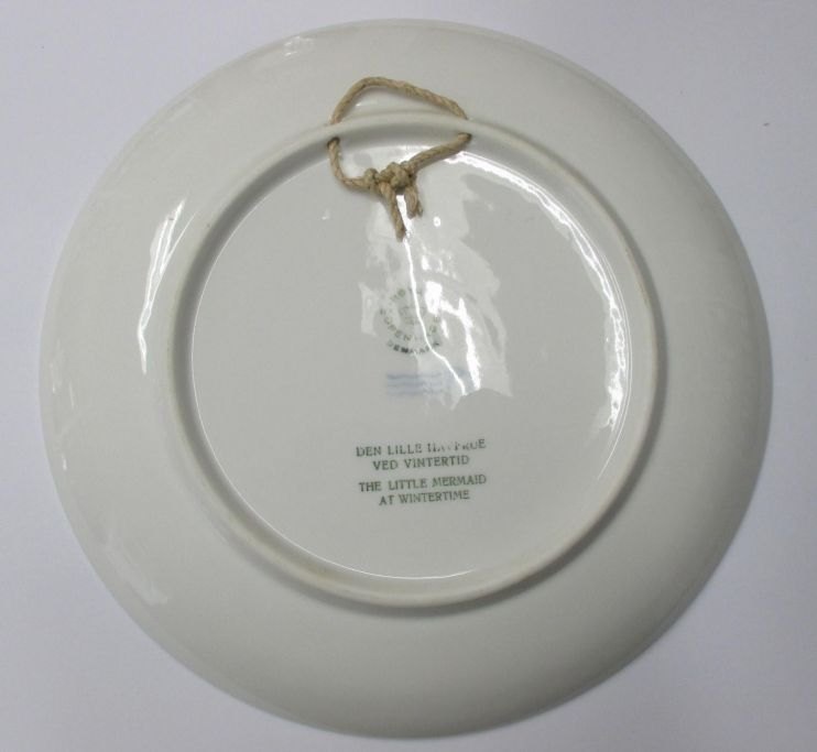 Royal Copenhagen juleplatte, 1962, København, Danmark. Blå malet. Dekoreret med Den lille Havfrue ved Vintertid, København. Dia.: 18,5 cm. 1. Sortering. 2 på lager.Emne nummer: 15040