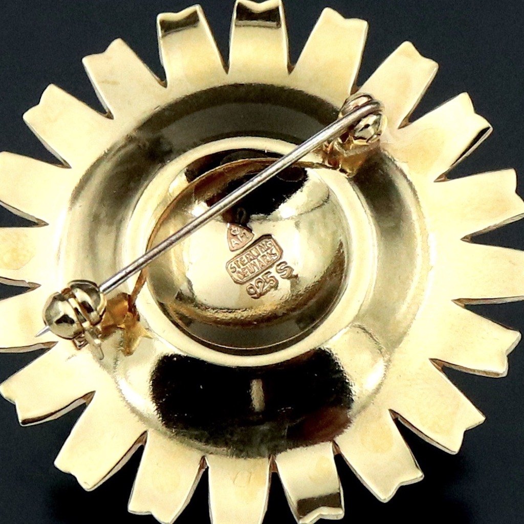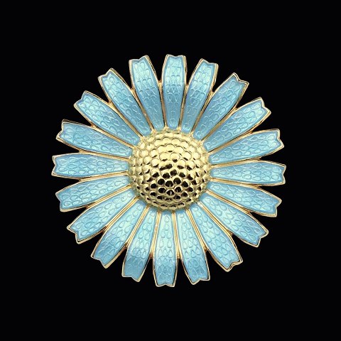 A. Michelsen Marguerit / Daisy Broche i forgyldt sterling sølv med turkis emalje - 43mm.Udført hos A. Michelsen (1841 - 1985).