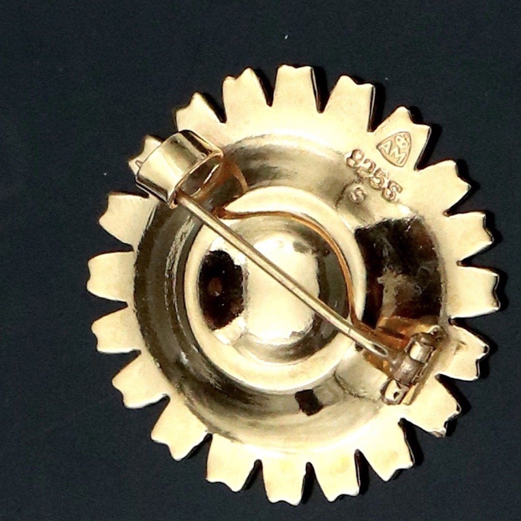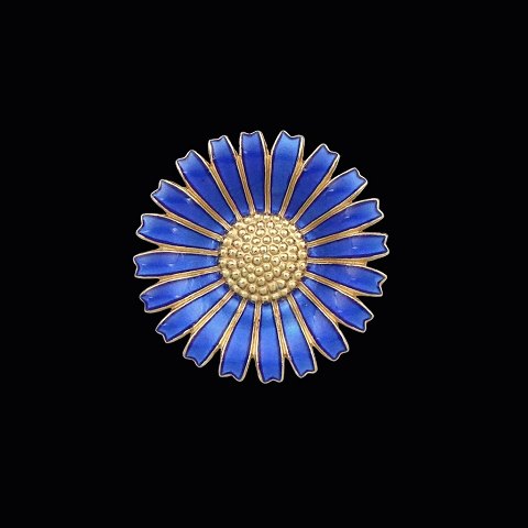 A. Michelsen Marguerit / Daisy Broche i forgyldt sterling sølv med blå emalje - 33mm.Udført hos A. Michelsen (1841 - 1985).