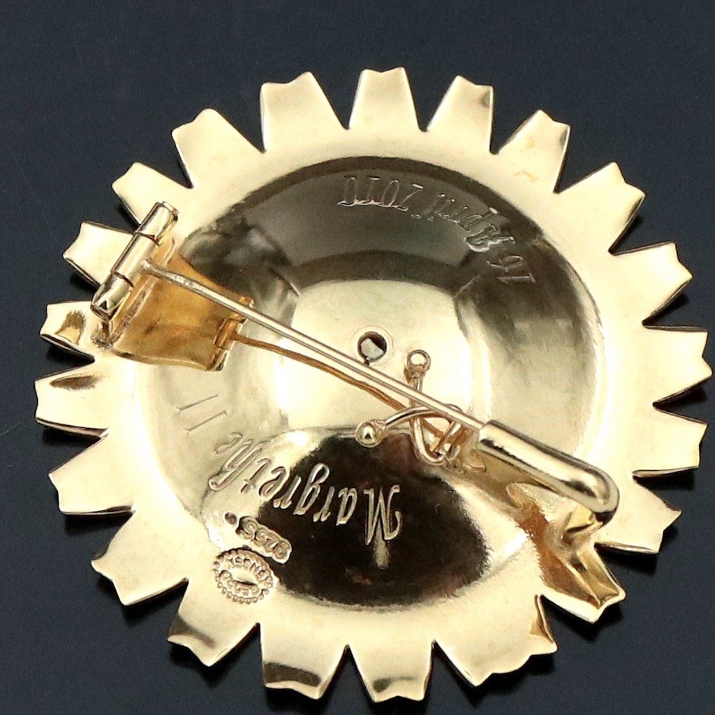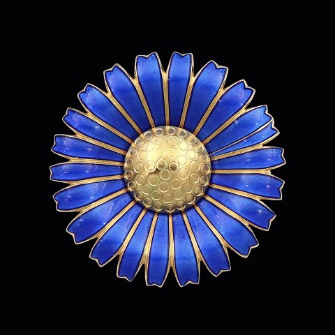 Georg Jensen Marguerit / Daisy Broche / Vedhæng i forgyldt sterling sølv med blå emalje - 50mm.Udført hos Georg Jensen.