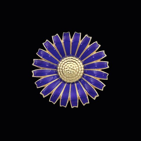 Georg Jensen Marguerit / Daisy Broche i forgyldt sterling sølv med kongeblå emalje - 43mm.Udført hos Georg Jensen.