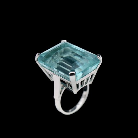 Ring i 14k hvidguld med aquamarin.Stemplet 585.