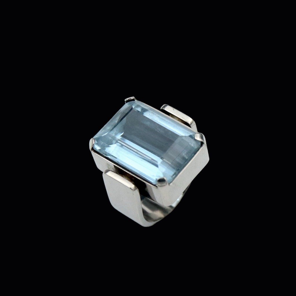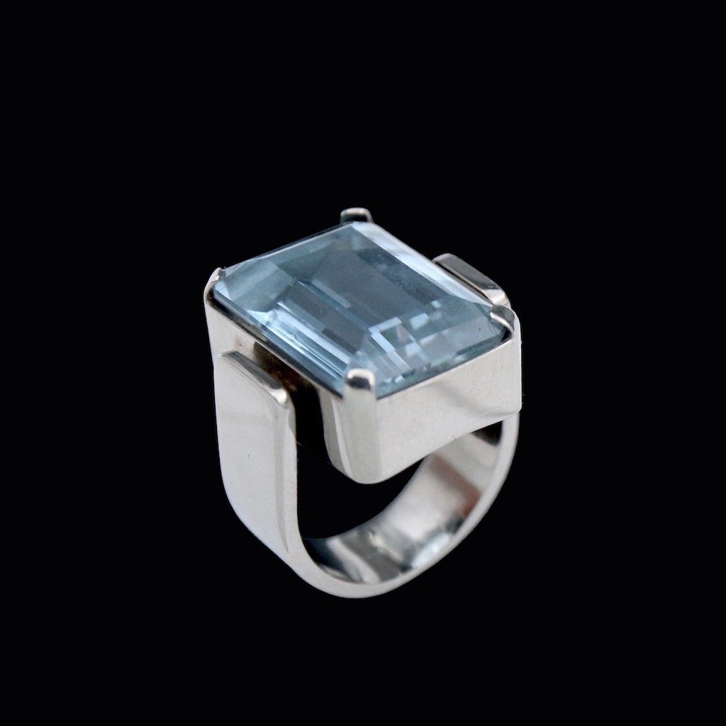 Boy Johansen. Ring i 18k hvidguld med aquamarine.Tegnet og udført hos Svend Erik Boy Johansen - Aarhus.